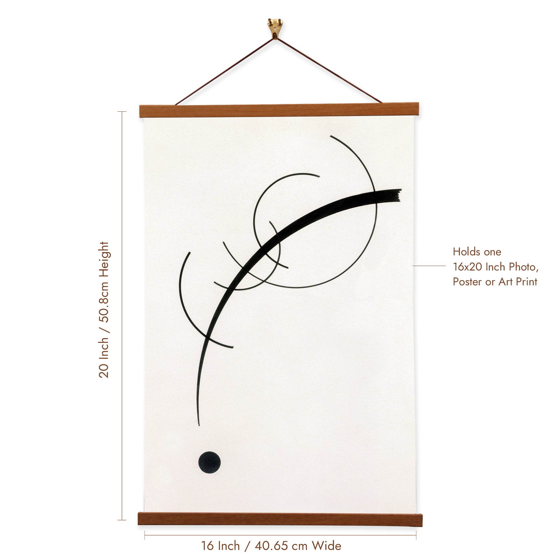 Our posters is elegantly suspended from a magnetic hanger crafted from rich walnut-colored wood, accentuated by a rustic rawhide string for a timeless and sophisticated display. Transform your space with this combination of artistry and craftsmanship.