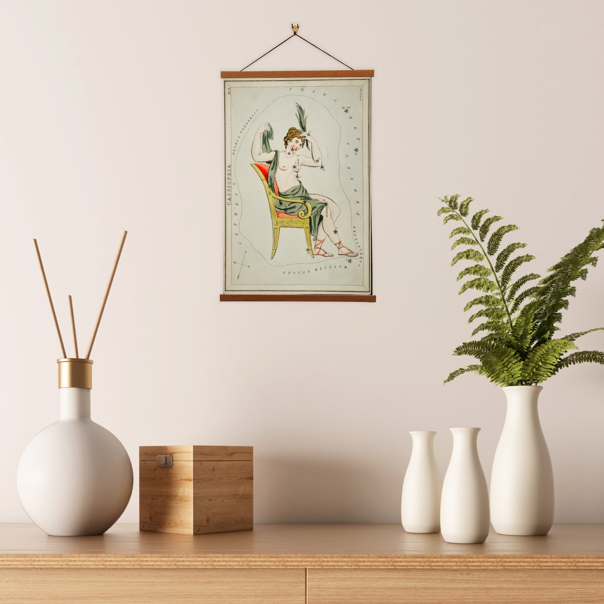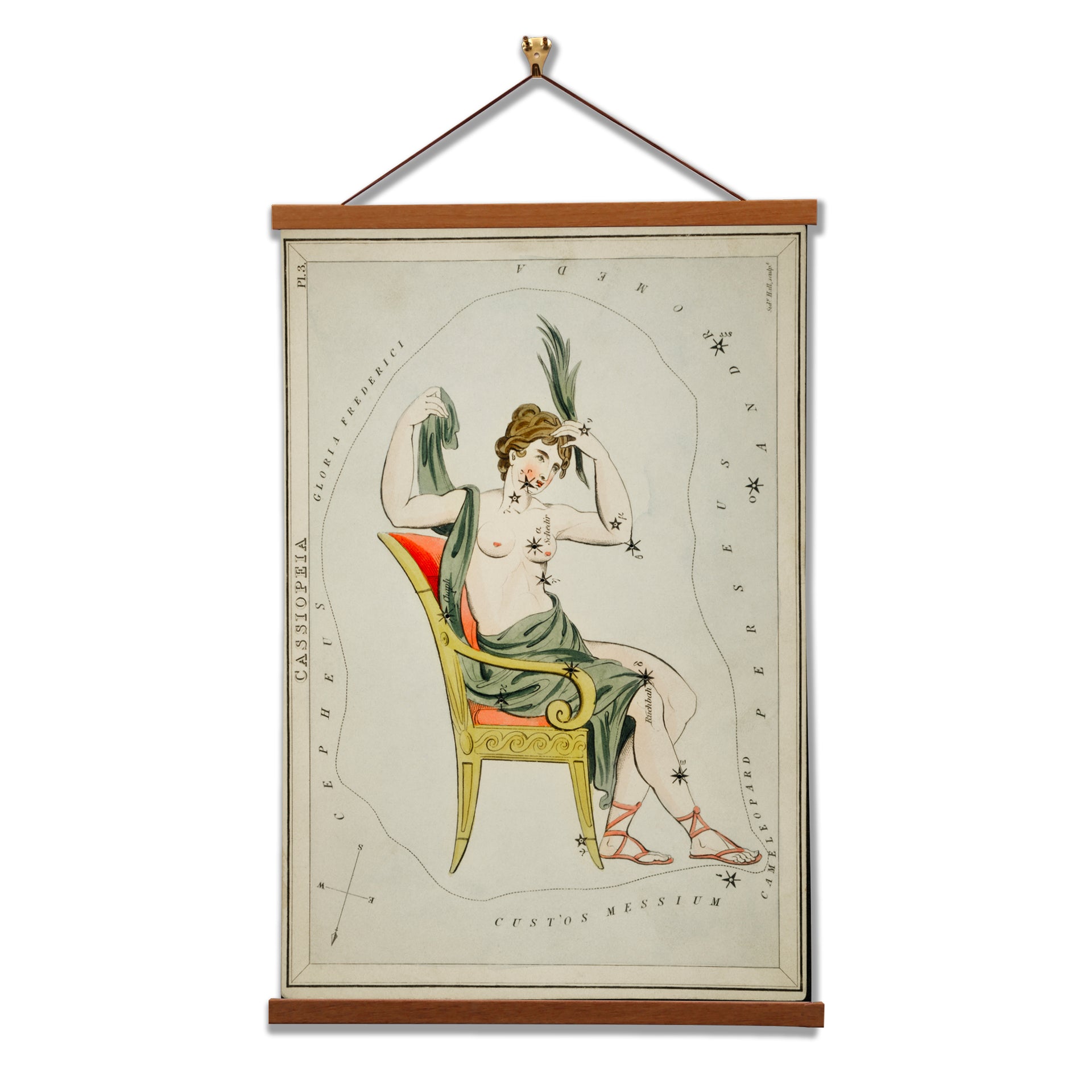 "Cassiopeia" by Sidney Hall is a stunning astronomical illustration that captures the iconic constellation in all its celestial splendor. Created in the 19th century, this masterpiece showcases the queen of Ethiopia, immortalized in the stars, and is a testament to Hall's artistic and scientific expertise in astronomy.