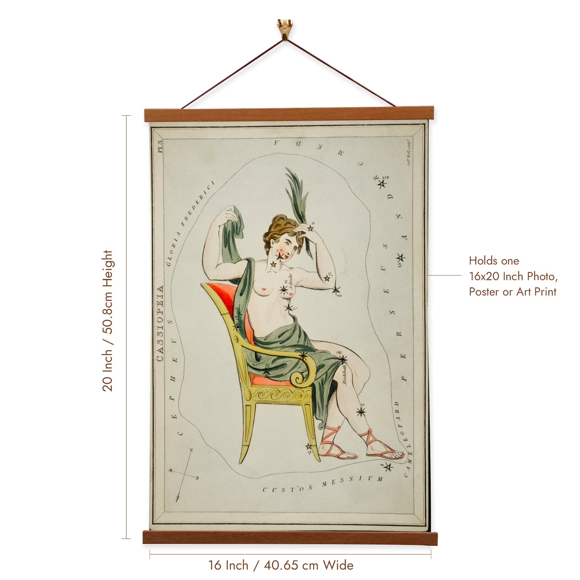 Our posters is elegantly suspended from a magnetic hanger crafted from rich walnut-colored wood, accentuated by a rustic rawhide string for a timeless and sophisticated display. Transform your space with this combination of artistry and craftsmanship.