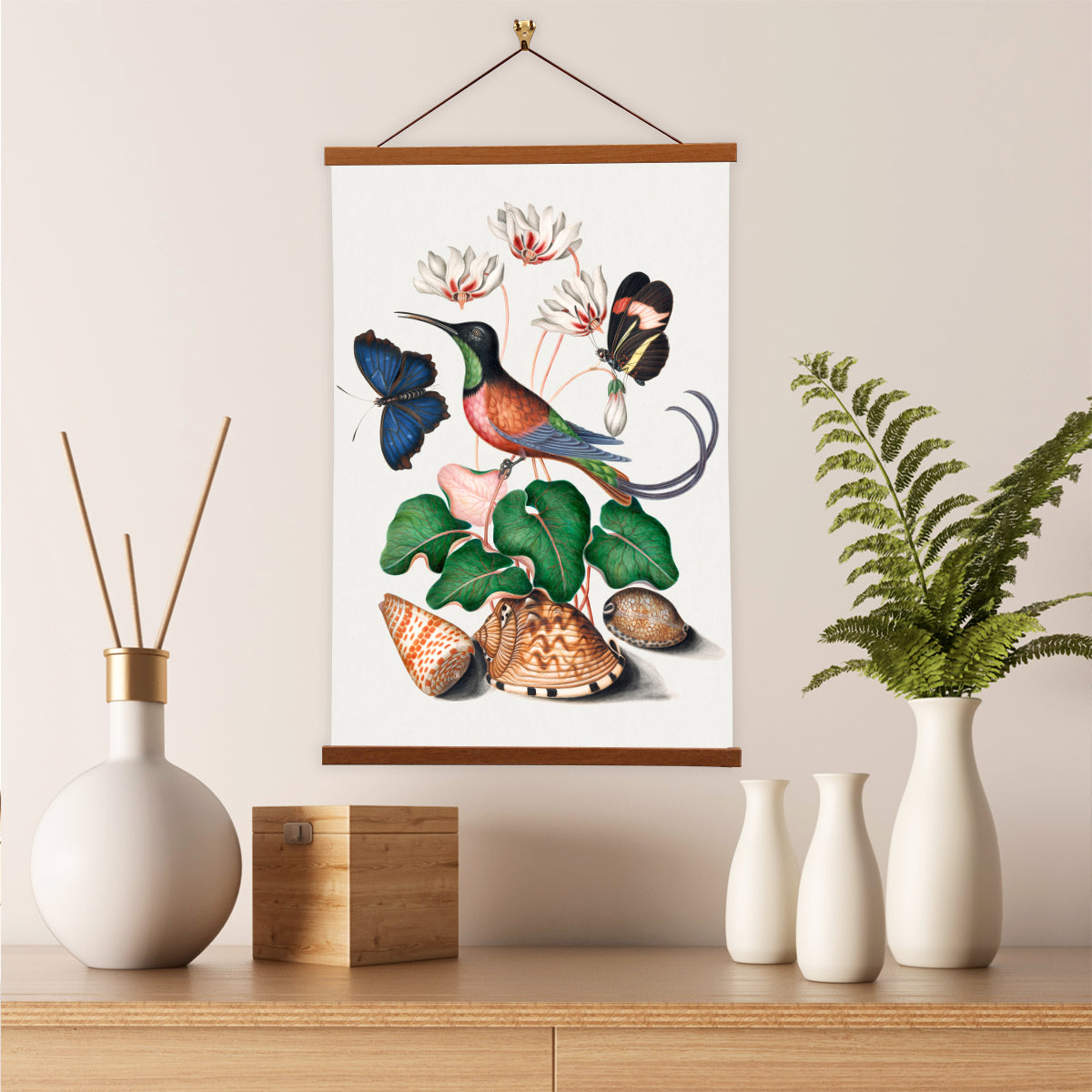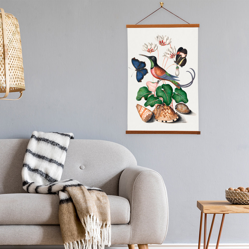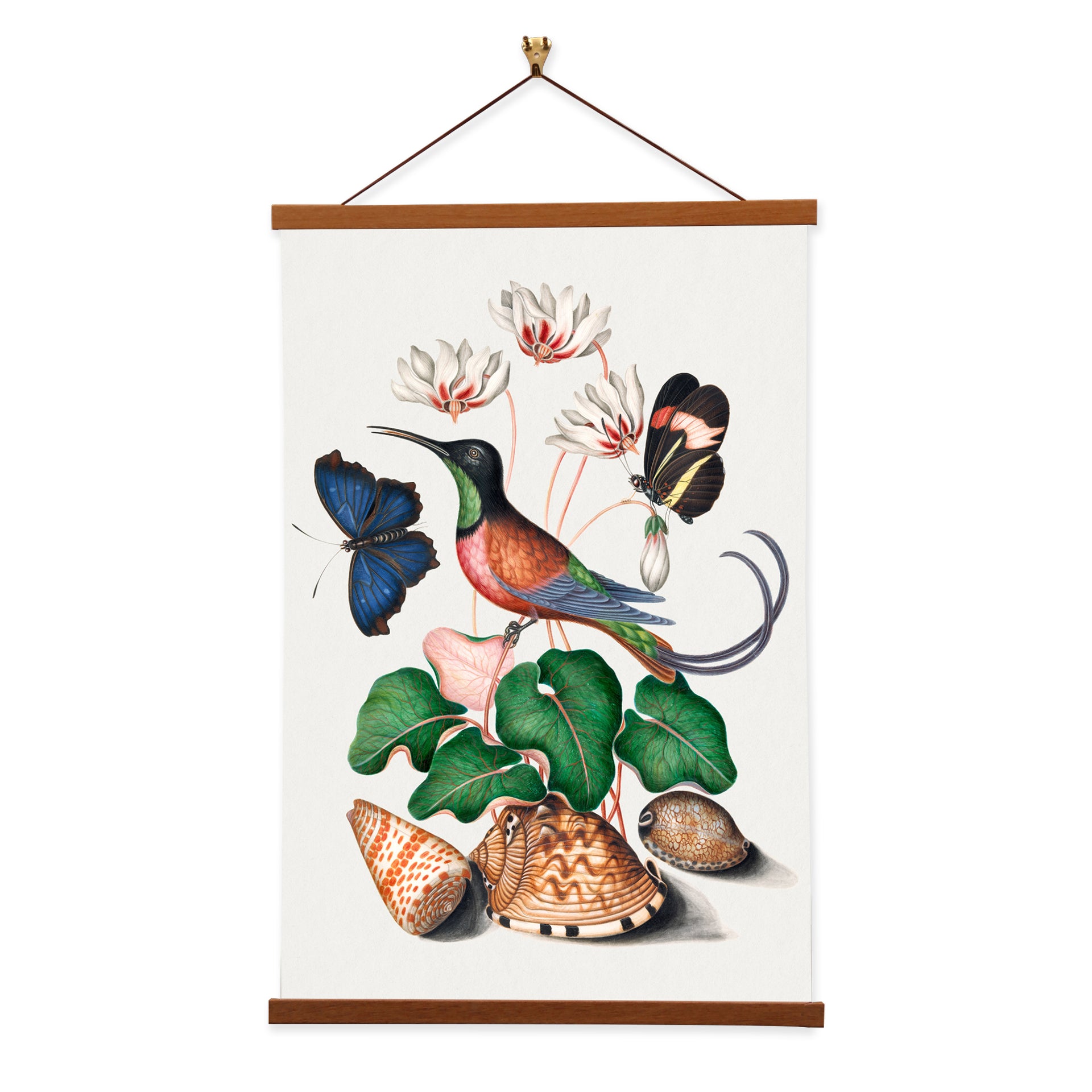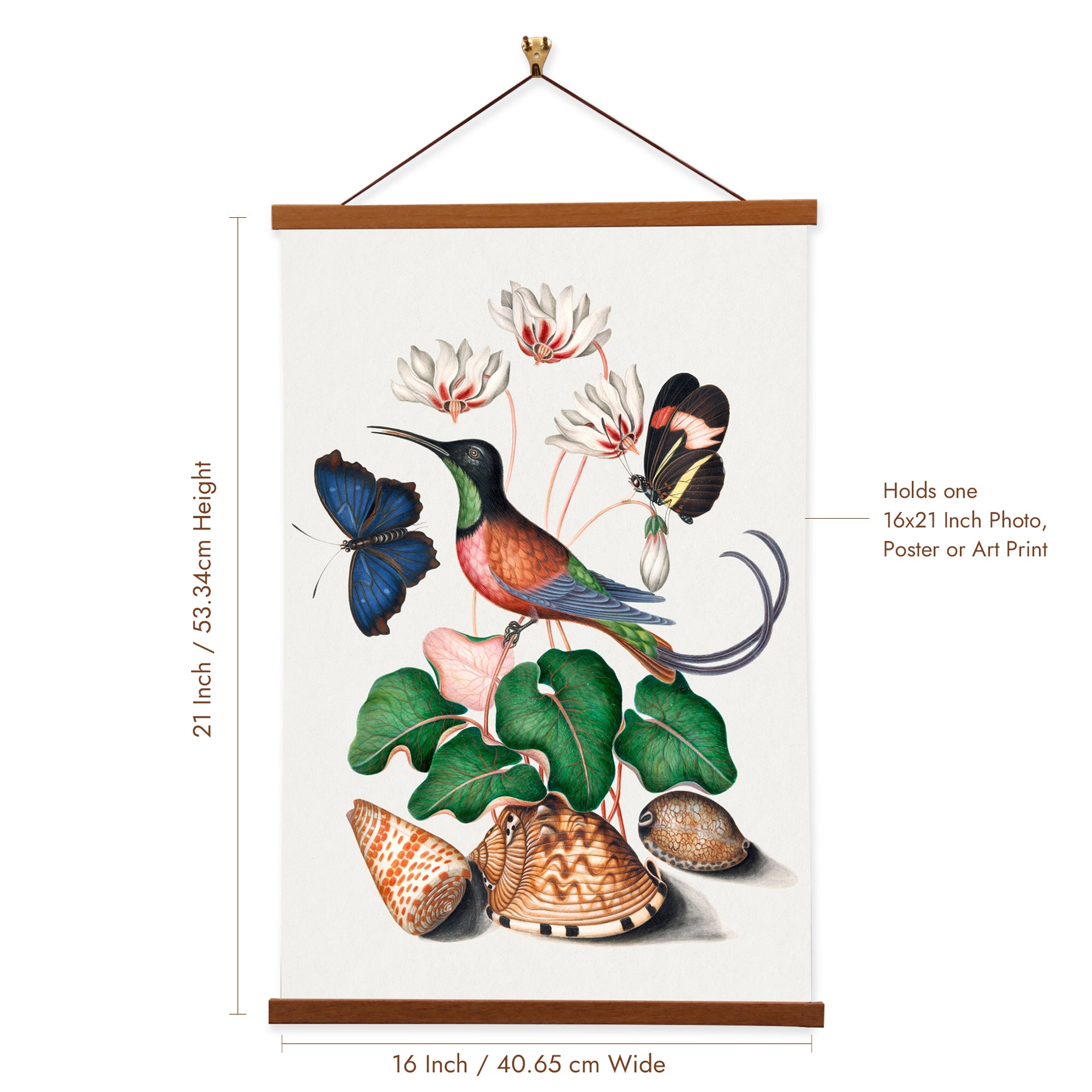 Our posters is elegantly suspended from a magnetic hanger crafted from rich walnut-colored wood, accentuated by a rustic rawhide string for a timeless and sophisticated display. Transform your space with this combination of artistry and craftsmanship.