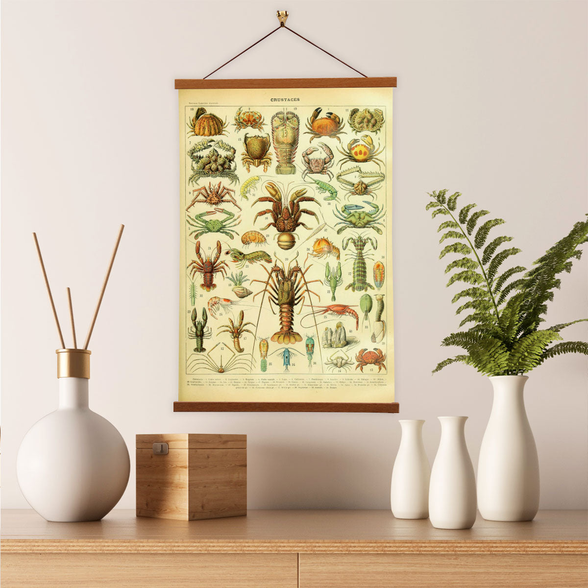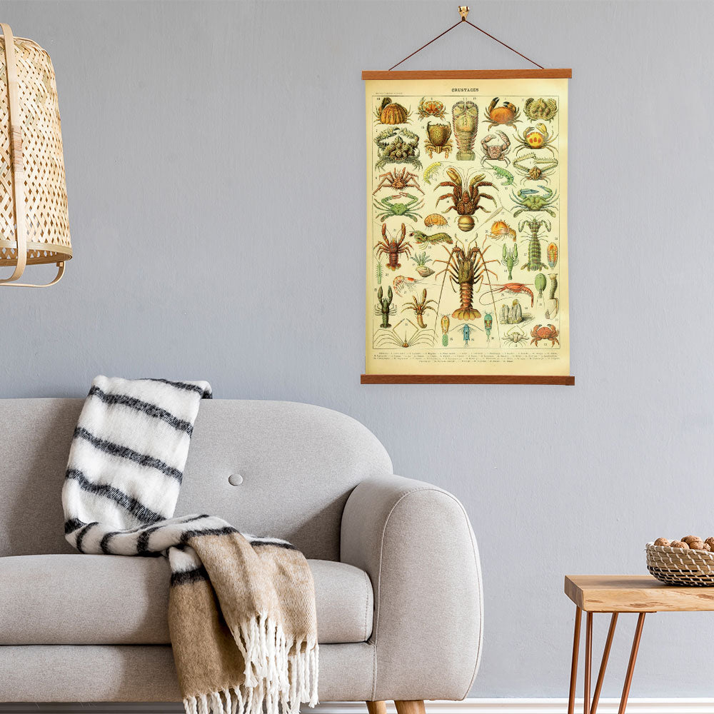 Our posters are elegantly suspended from a magnetic hanger crafted from rich walnut-colored wood, accentuated by a rustic rawhide string for a timeless and sophisticated display. Transform your space with this combination of artistry and craftsmanship.
