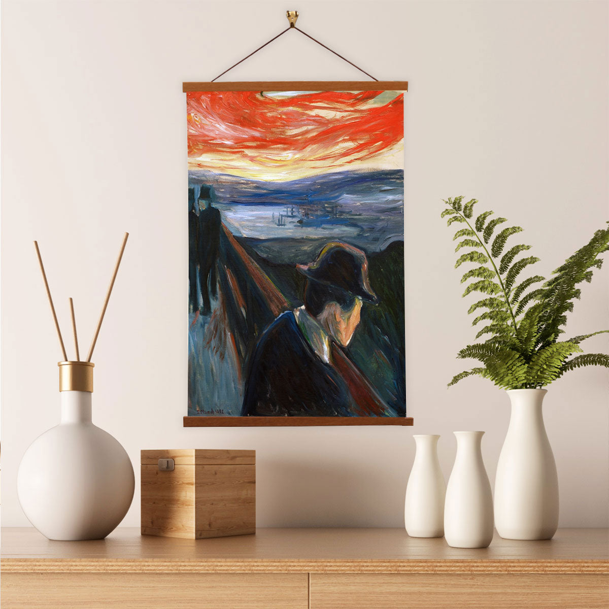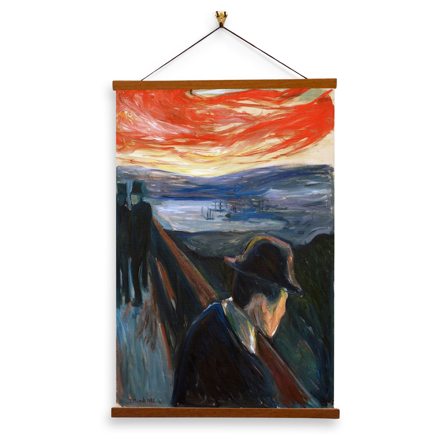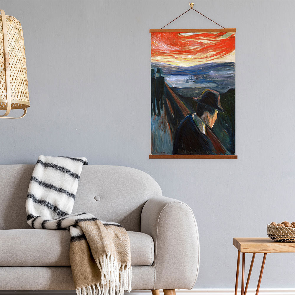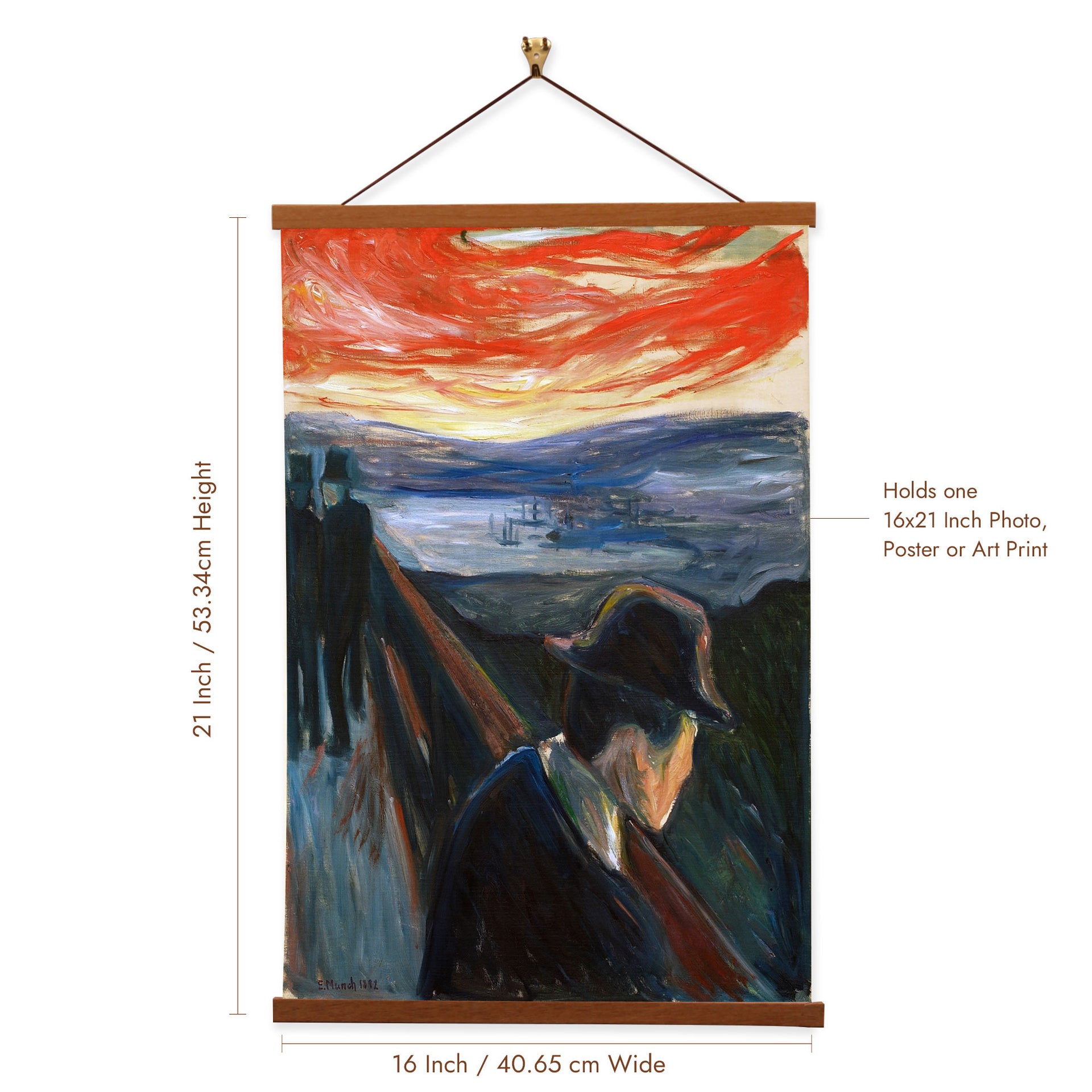 Our posters are elegantly suspended from a magnetic hanger crafted from rich walnut-colored wood, accentuated by a rustic rawhide string for a timeless and sophisticated display. Transform your space with this combination of artistry and craftsmanship.