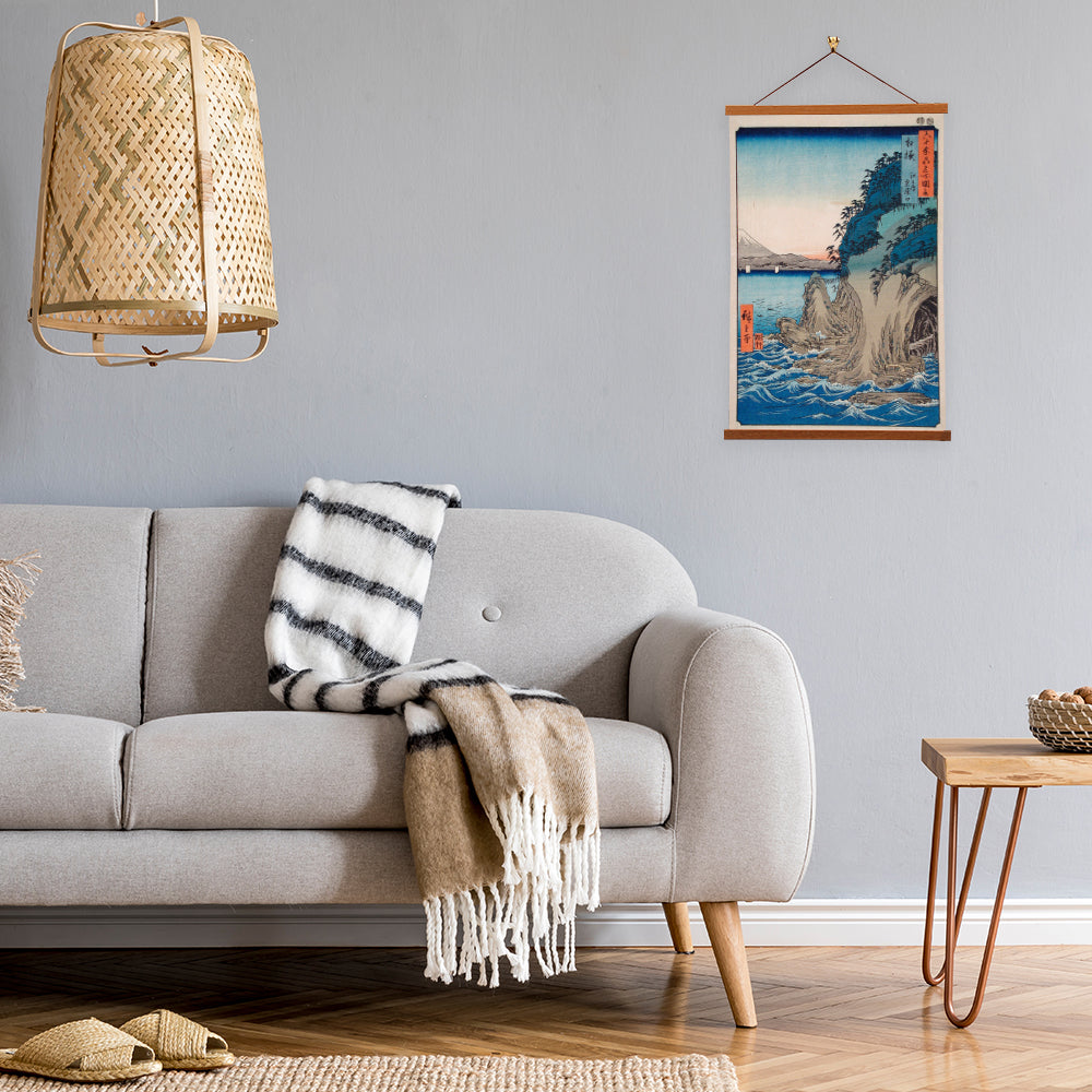 Our posters is elegantly suspended from a magnetic hanger crafted from rich walnut-colored wood, accentuated by a rustic rawhide string for a timeless and sophisticated display. Transform your space with this combination of artistry and craftsmanship.