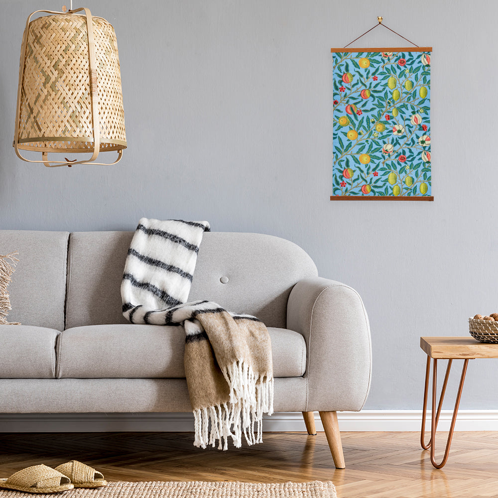 Our posters is elegantly suspended from a magnetic hanger crafted from rich walnut-colored wood, accentuated by a rustic rawhide string for a timeless and sophisticated display. Transform your space with this combination of artistry and craftsmanship.
