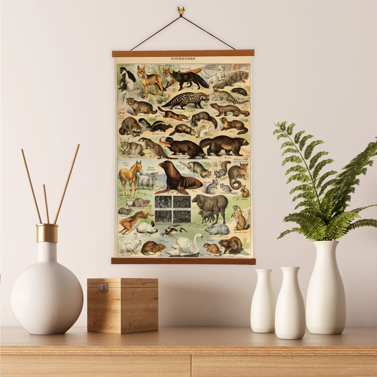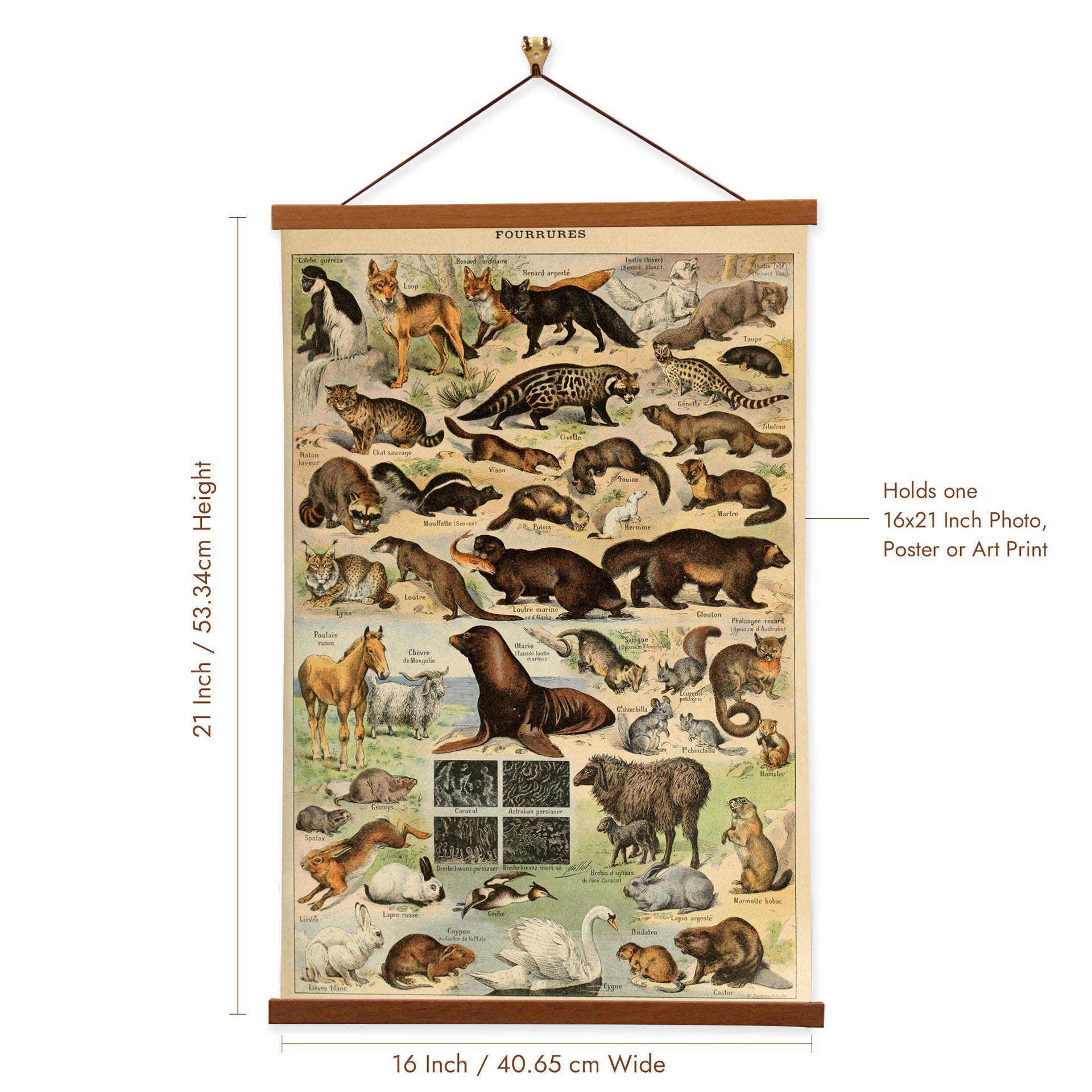 Fourrures by Adolphe Millot Scientific Illustration Canvas Wall Print with Magnetic Hanger