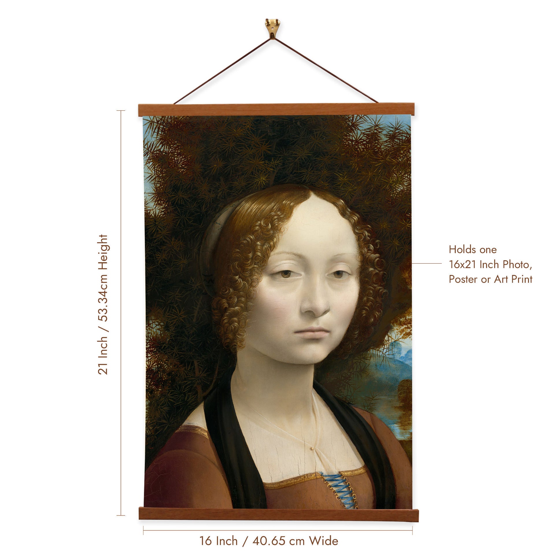 Our posters are elegantly suspended from a magnetic hanger crafted from rich walnut-colored wood, accentuated by a rustic rawhide string for a timeless and sophisticated display. Transform your space with this combination of artistry and craftsmanship.
