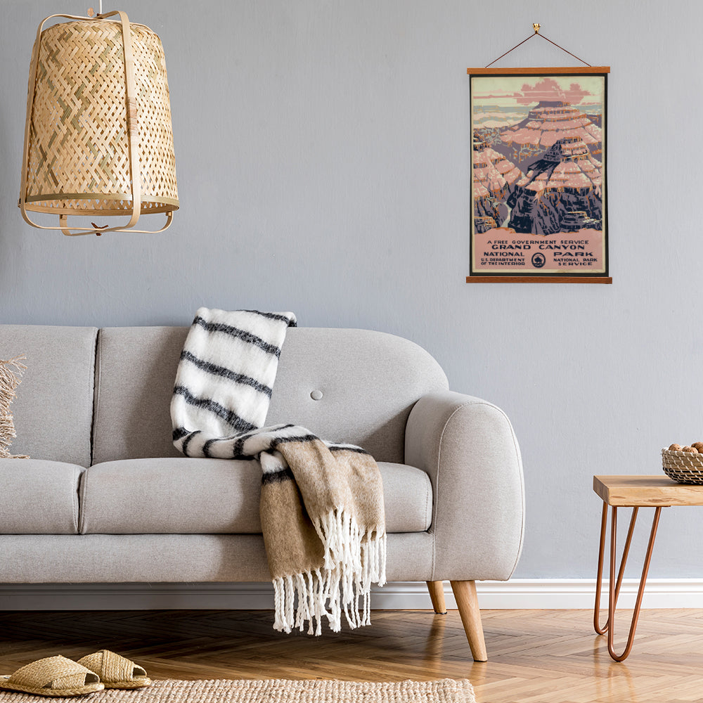 Experience the majestic beauty of the Grand Canyon with the vintage poster from the United States Department of the Interior - National Park Service. This iconic artwork celebrates the splendor of one of America's most treasured natural wonders. The poster, a testament to the enduring legacy of conservation, vividly captures the awe-inspiring expanse of the canyon's rugged terrain. With its vivid imagery and historical significance, it serves as a window into the past, inviting you to explore the depths of this geological marvel. Add a touch of adventure and reverence for nature's wonders to your space with this timeless piece.