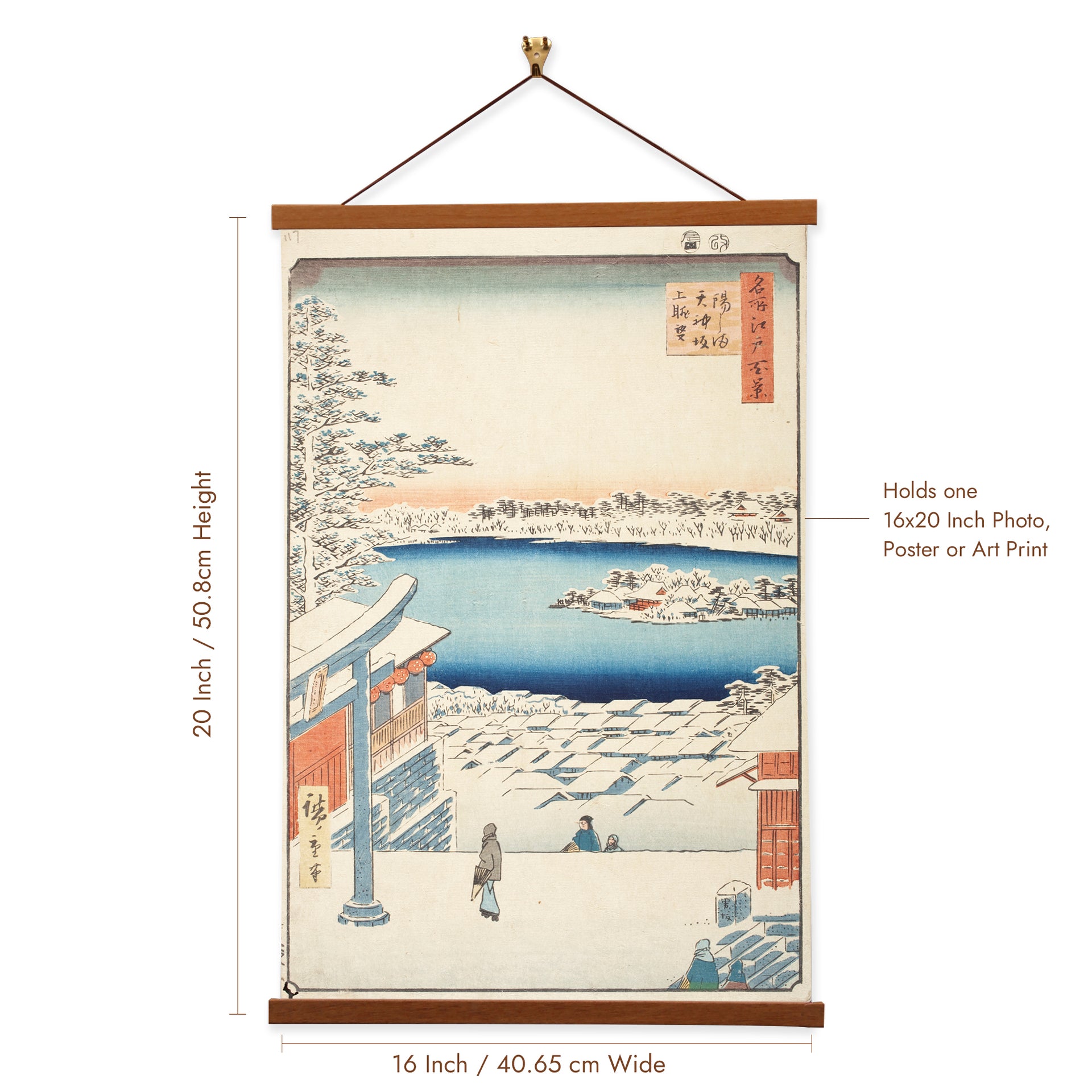 Our posters is elegantly suspended from a magnetic hanger crafted from rich walnut-colored wood, accentuated by a rustic rawhide string for a timeless and sophisticated display. Transform your space with this combination of artistry and craftsmanship.