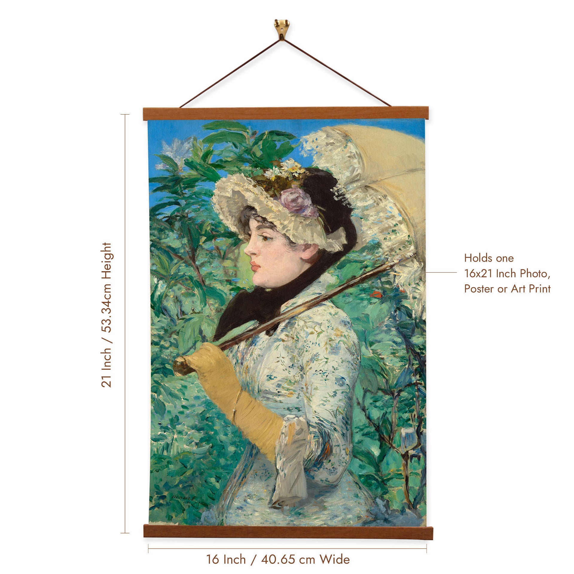 Our posters are elegantly suspended from a magnetic hanger crafted from rich walnut-colored wood, accentuated by a rustic rawhide string for a timeless and sophisticated display. Transform your space with this combination of artistry and craftsmanship.