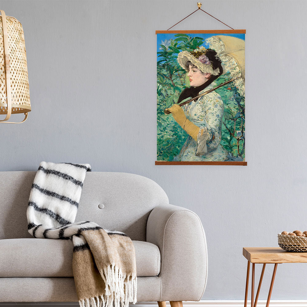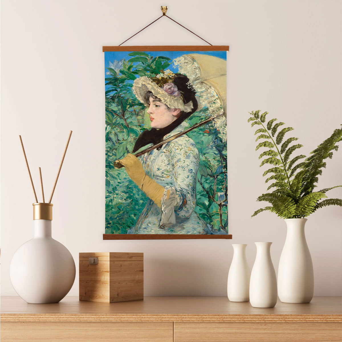 "Jeanne Spring" (1881) by Édouard Manet captures the essence of renewal and vitality, portraying a young woman surrounded by the freshness of spring. With delicate brushstrokes and a soft, luminous palette, Manet evokes a sense of natural elegance and fleeting beauty. The subject's gentle expression and flowing attire harmonize with the lush background, embodying the artist’s mastery of light and modern portraiture.
