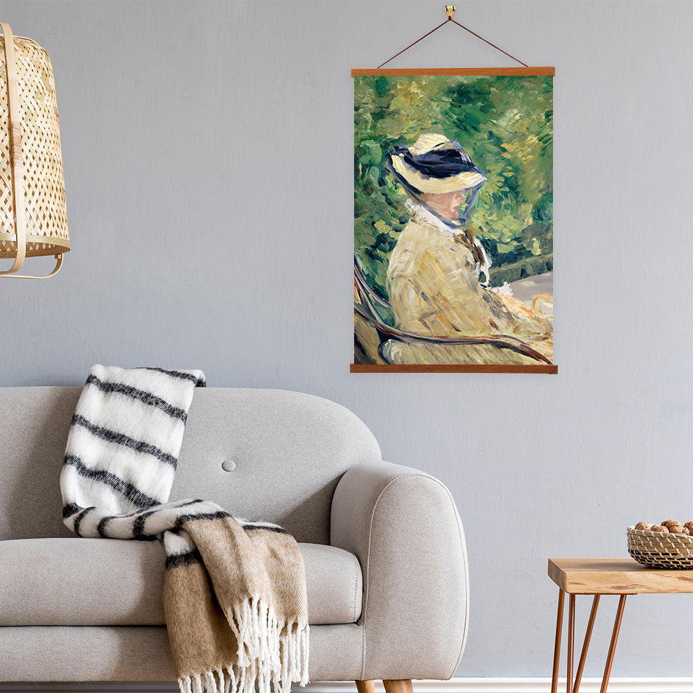"Madame Manet (Suzanne Leenhoff) at Bellevue" by Édouard Manet offers an intimate glimpse into the artist’s personal world. Depicting his wife seated in an outdoor setting, the painting conveys a sense of quiet contemplation. Manet’s soft, expressive brushwork and delicate color palette enhance the warmth and affection in the portrait, celebrating both the subject’s presence and the fleeting nature of the moment.