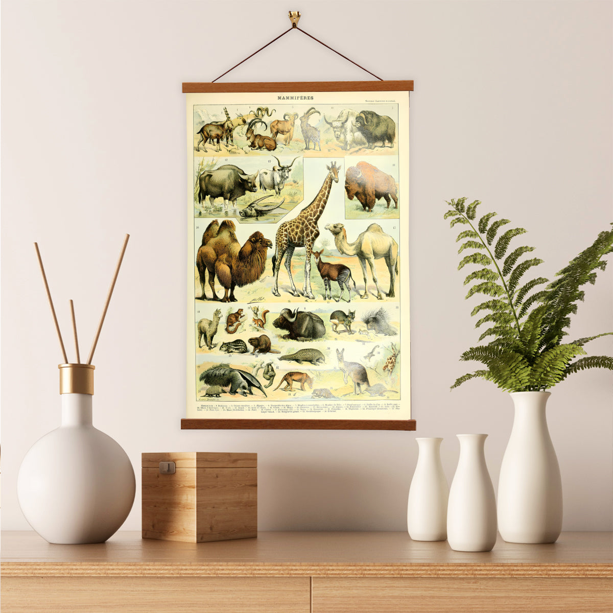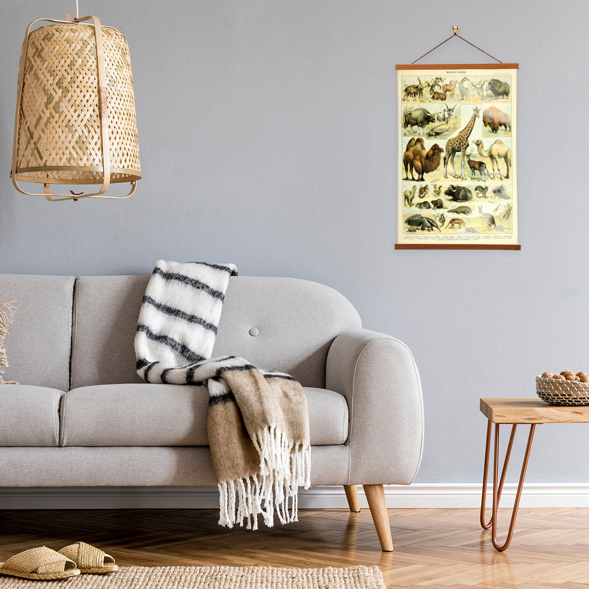 Our posters is elegantly suspended from a magnetic hanger crafted from rich walnut-colored wood, accentuated by a rustic rawhide string for a timeless and sophisticated display. Transform your space with this combination of artistry and craftsmanship.