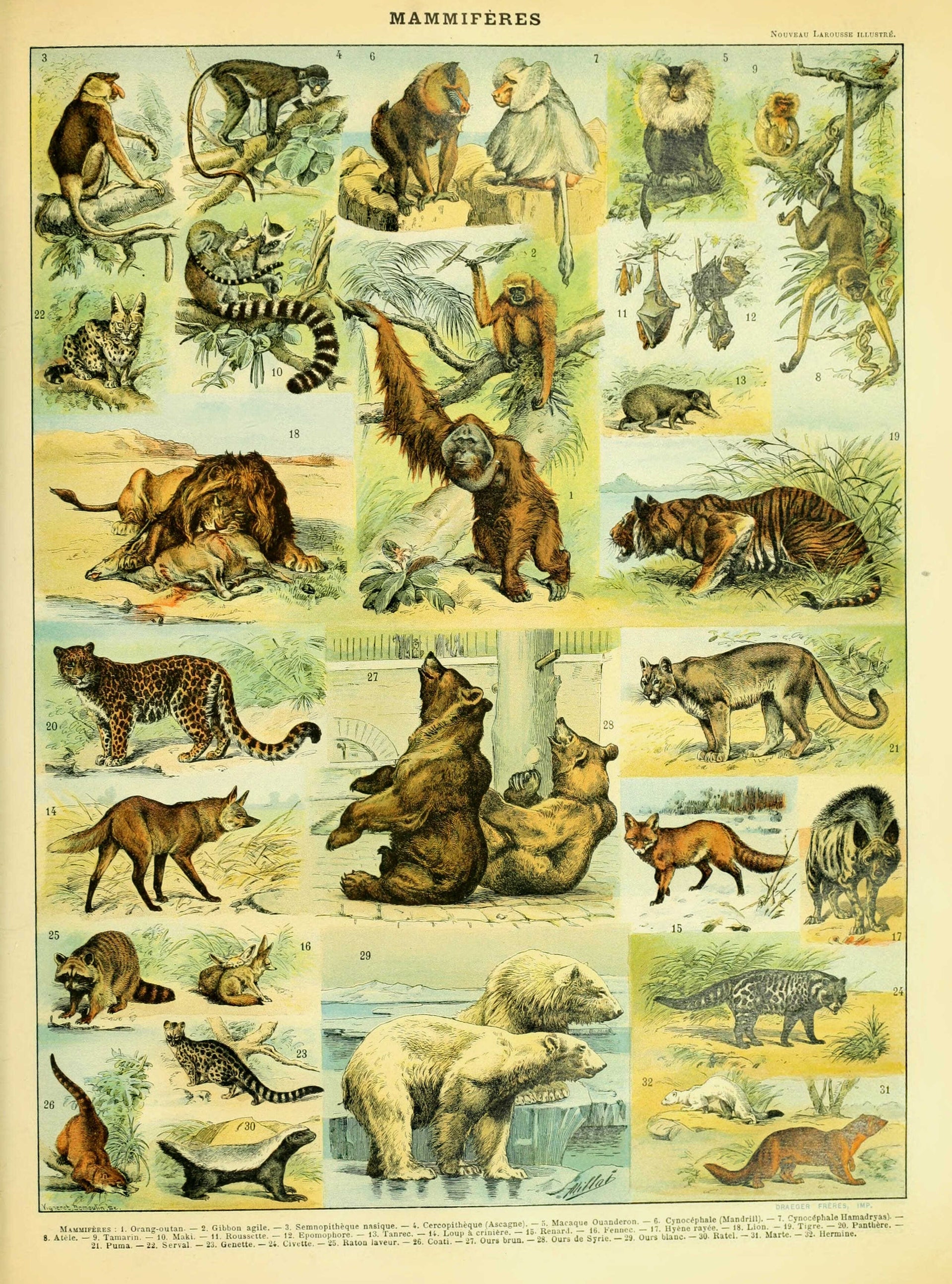 Mammiferes Set B by Adolphe Millot Scientific Illustration Canvas Wall Print with Magnetic Hanger