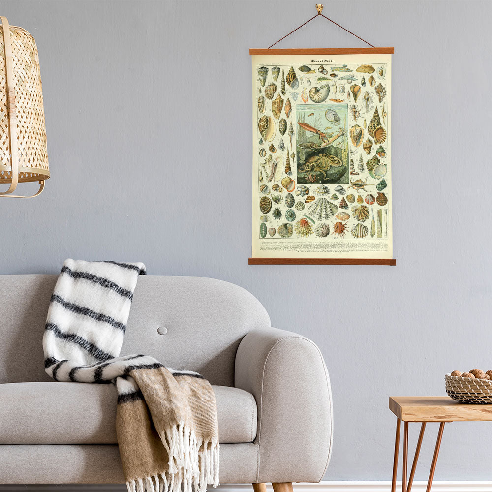 Our posters is elegantly suspended from a magnetic hanger crafted from rich walnut-colored wood, accentuated by a rustic rawhide string for a timeless and sophisticated display. Transform your space with this combination of artistry and craftsmanship.