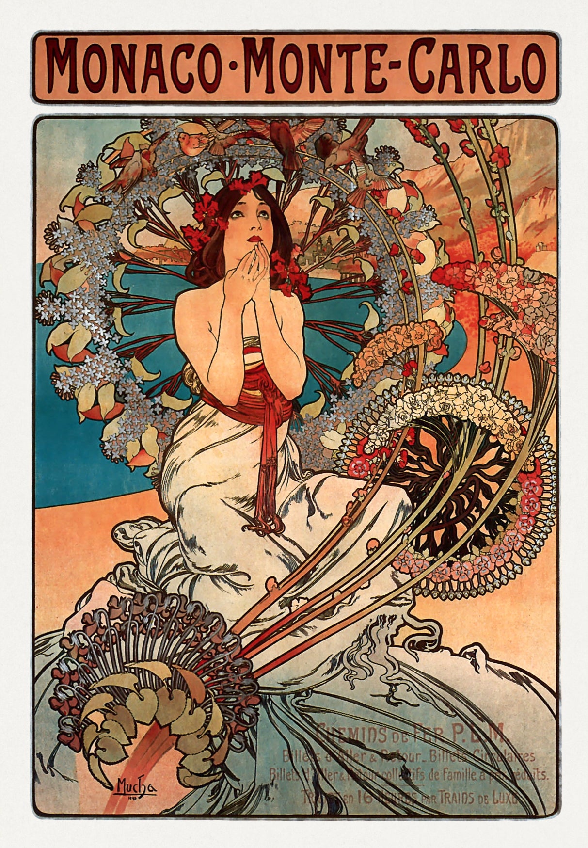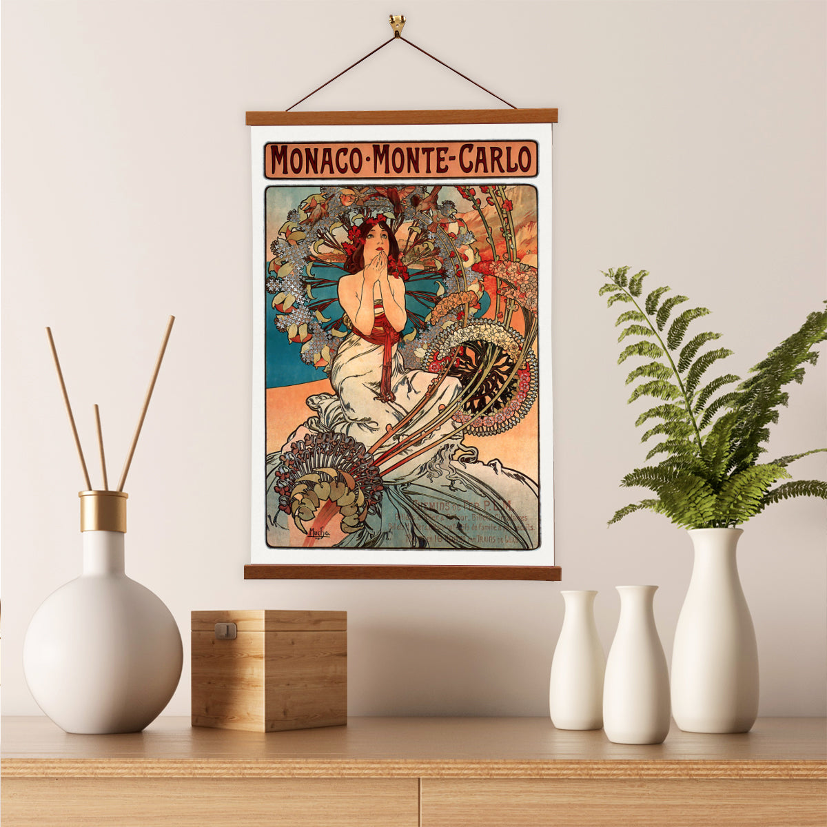 Monaco Monte Carlo by Alphonse Mucha Scientific Illustration Canvas Wall Print with Magnetic Hanger