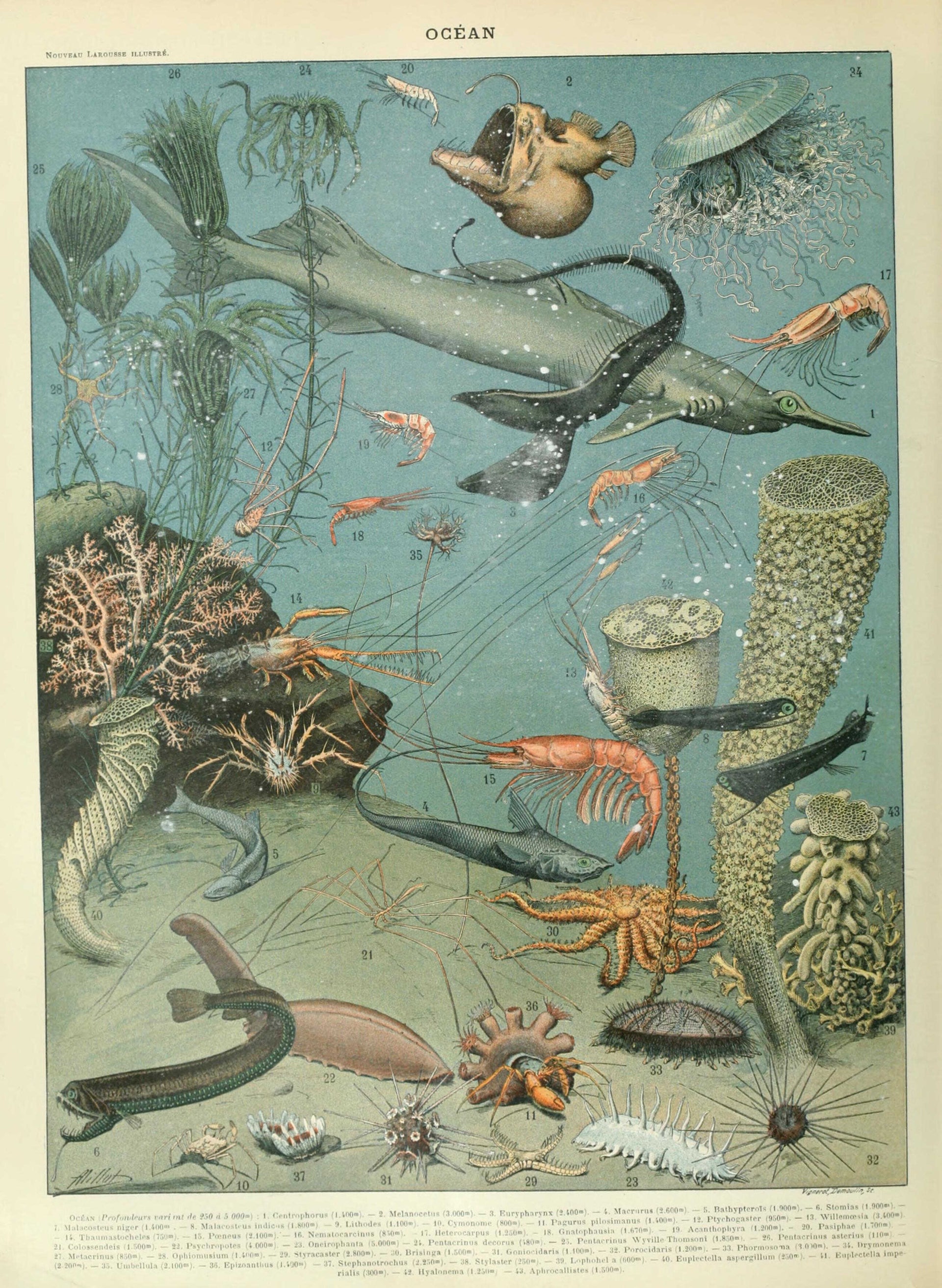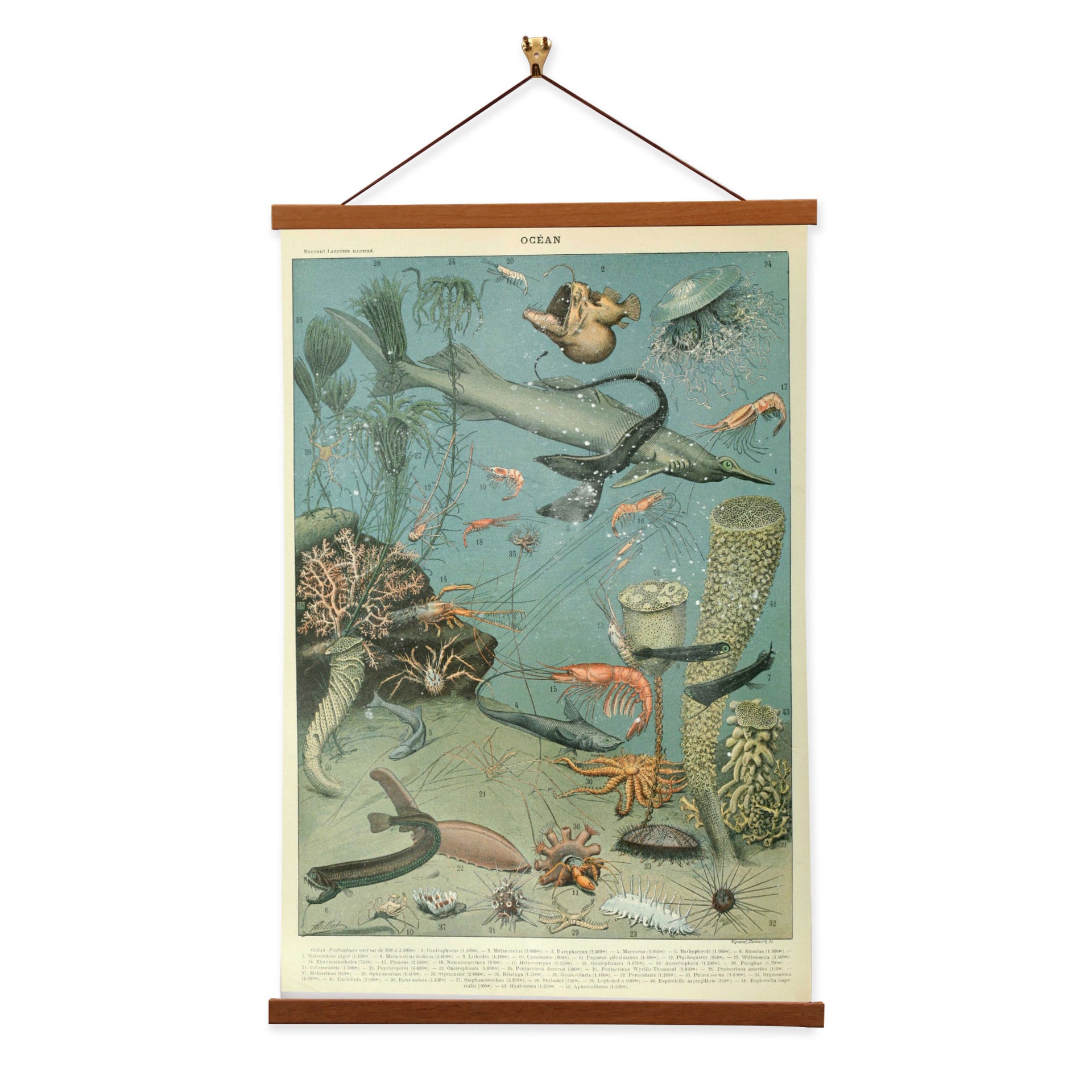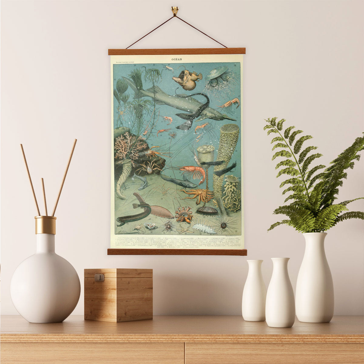 Ocean Set B by Adolphe Millot Scientific Illustration Canvas Wall Print with Magnetic Hanger
