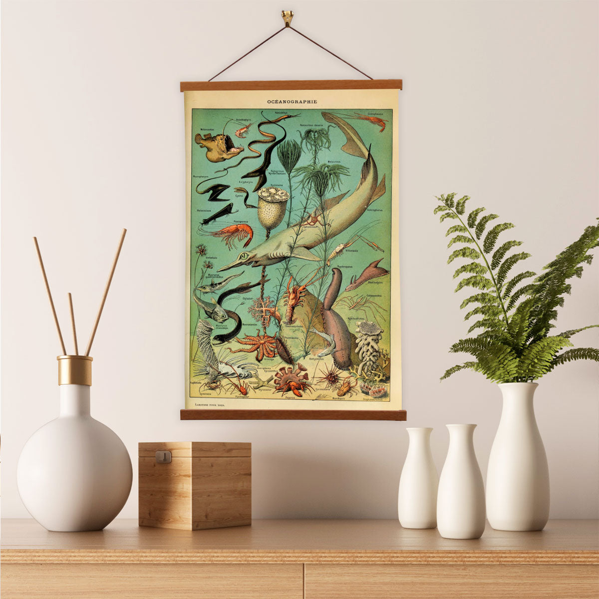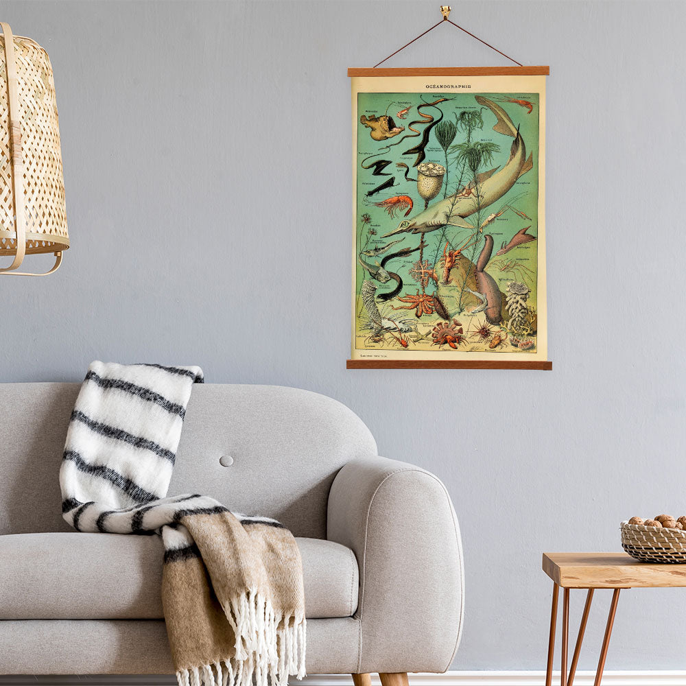 Our posters is elegantly suspended from a magnetic hanger crafted from rich walnut-colored wood, accentuated by a rustic rawhide string for a timeless and sophisticated display. Transform your space with this combination of artistry and craftsmanship.