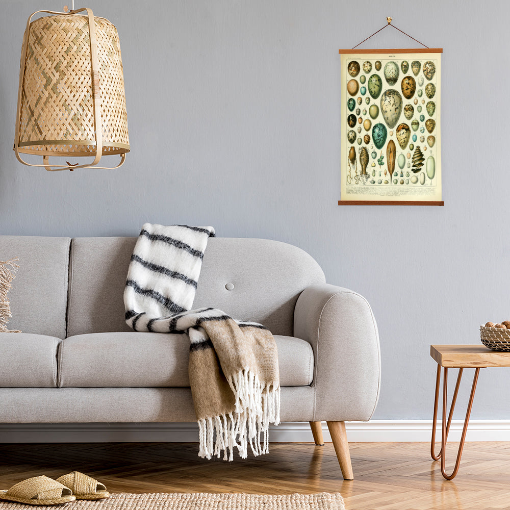 Our posters is elegantly suspended from a magnetic hanger crafted from rich walnut-colored wood, accentuated by a rustic rawhide string for a timeless and sophisticated display. Transform your space with this combination of artistry and craftsmanship.