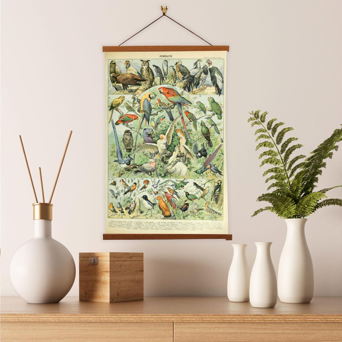 Our posters is elegantly suspended from a magnetic hanger crafted from rich walnut-colored wood, accentuated by a rustic rawhide string for a timeless and sophisticated display. Transform your space with this combination of artistry and craftsmanship.