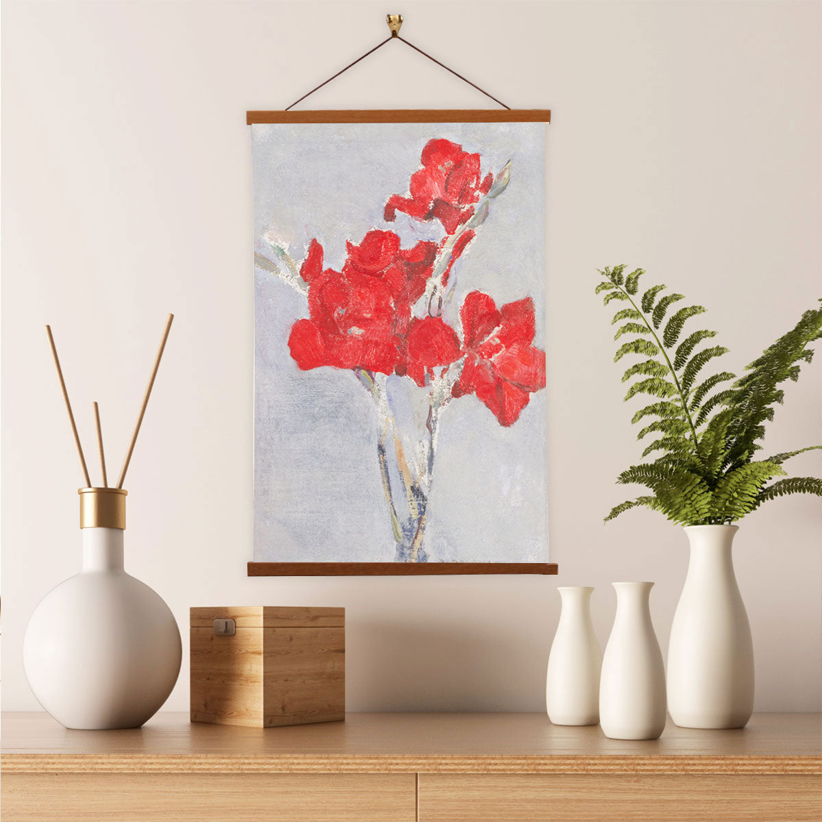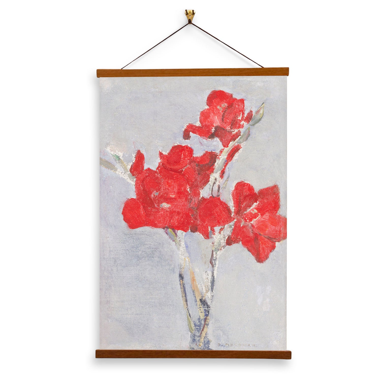 "Red Gladioli" by Piet Mondrian is a beautiful example of his transition from figurative to abstract art. This piece features vibrant red flowers, meticulously simplified into bold shapes and colors, capturing the essence of the subject while embracing Mondrian’s evolving style.