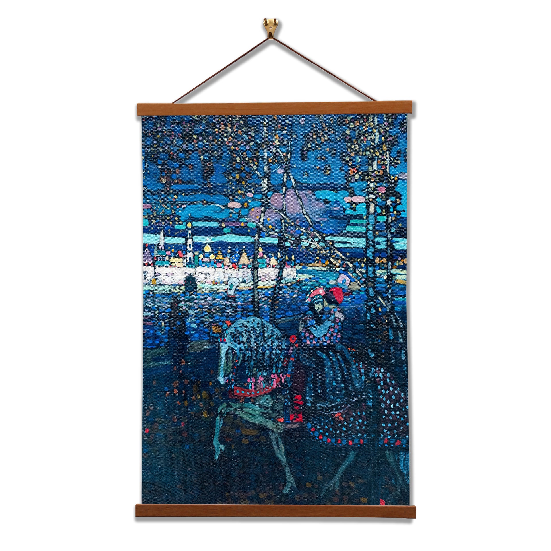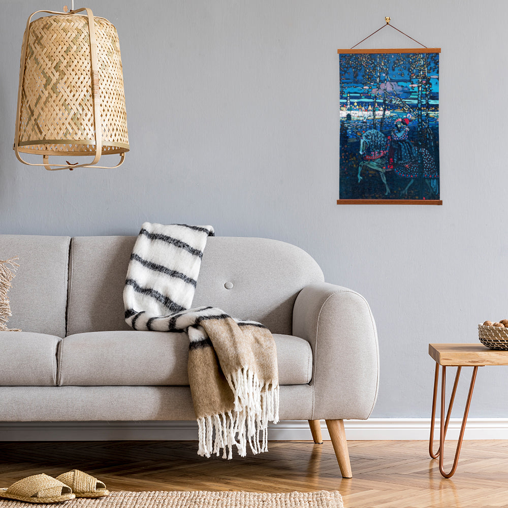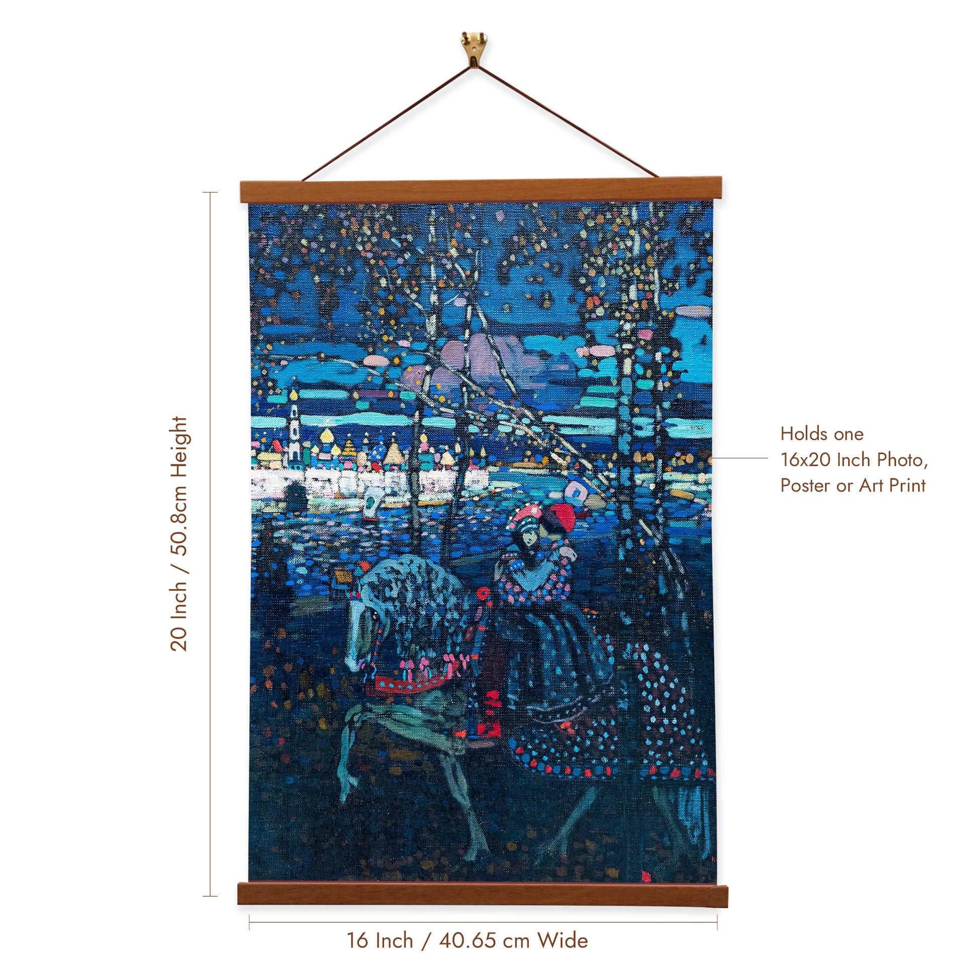 Our posters is elegantly suspended from a magnetic hanger crafted from rich walnut-colored wood, accentuated by a rustic rawhide string for a timeless and sophisticated display. Transform your space with this combination of artistry and craftsmanship.