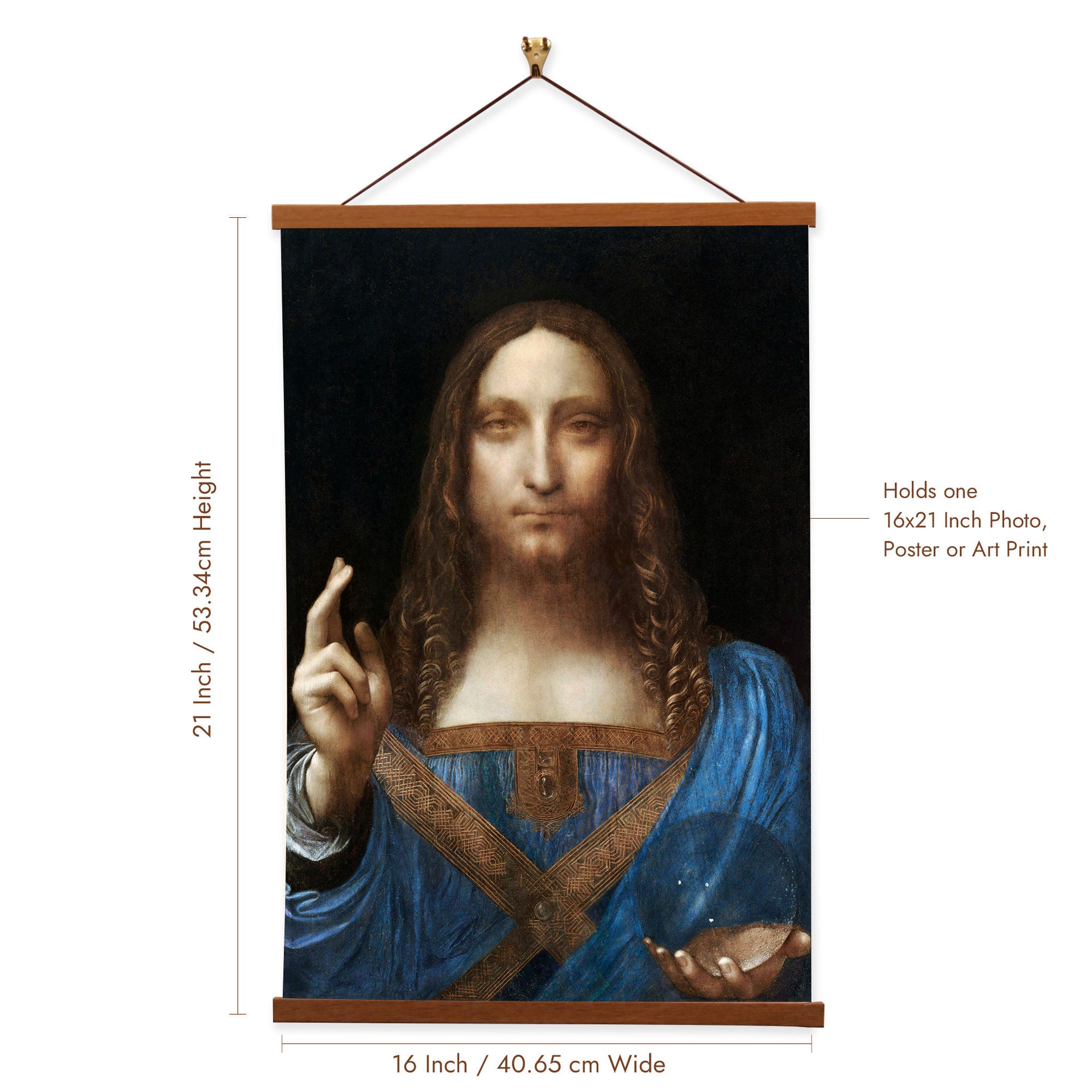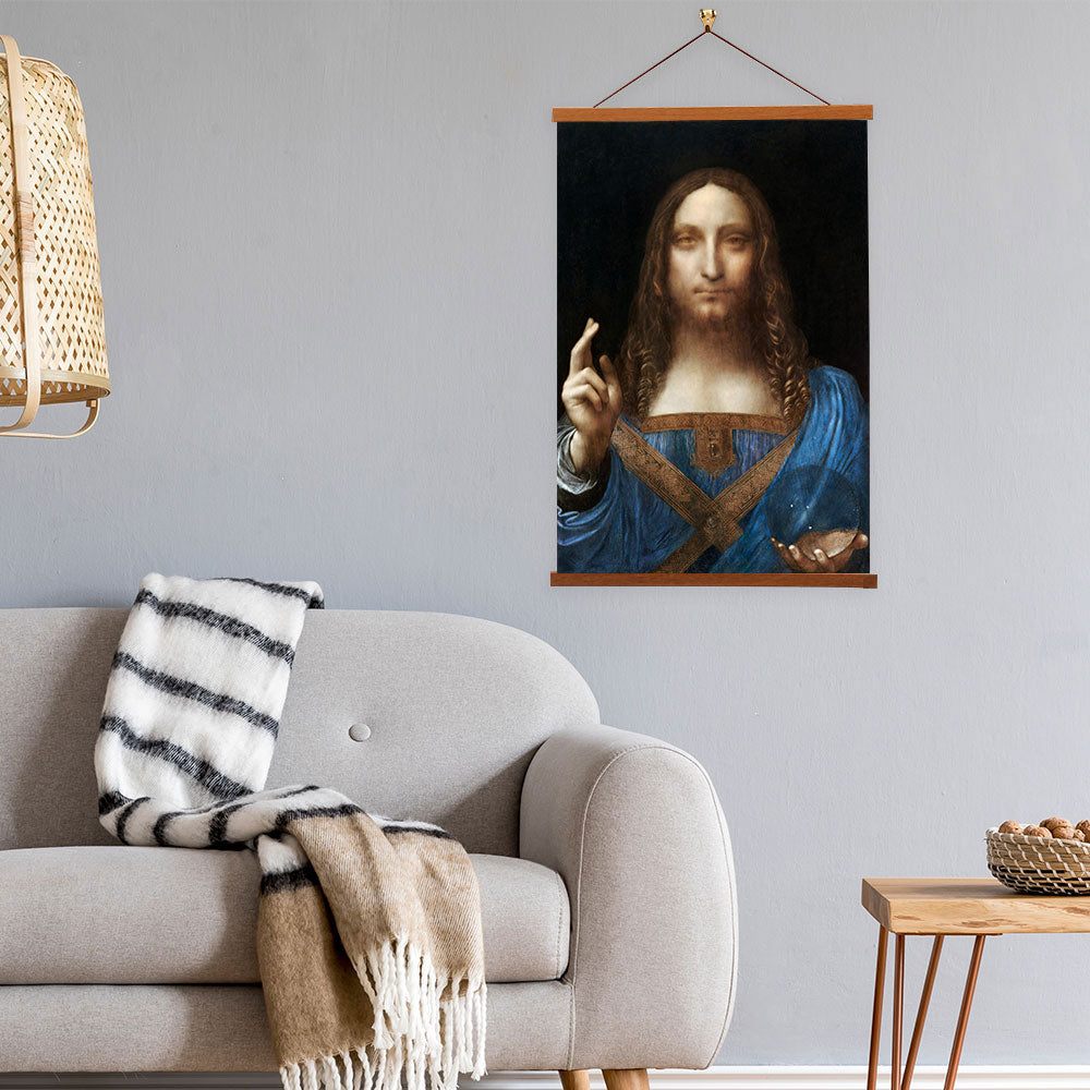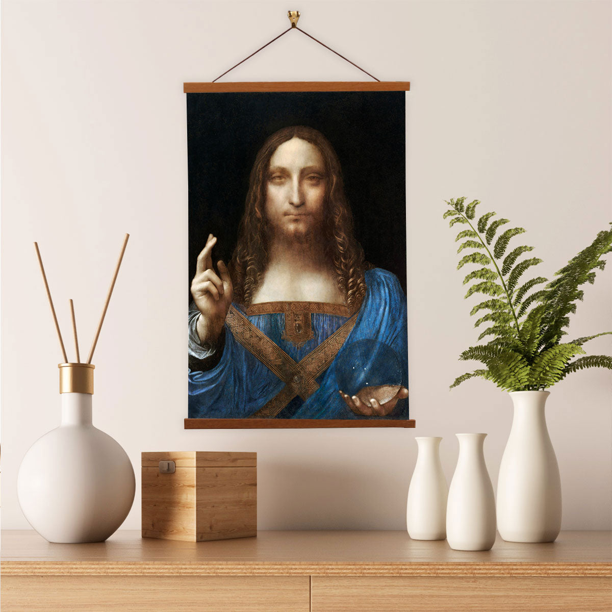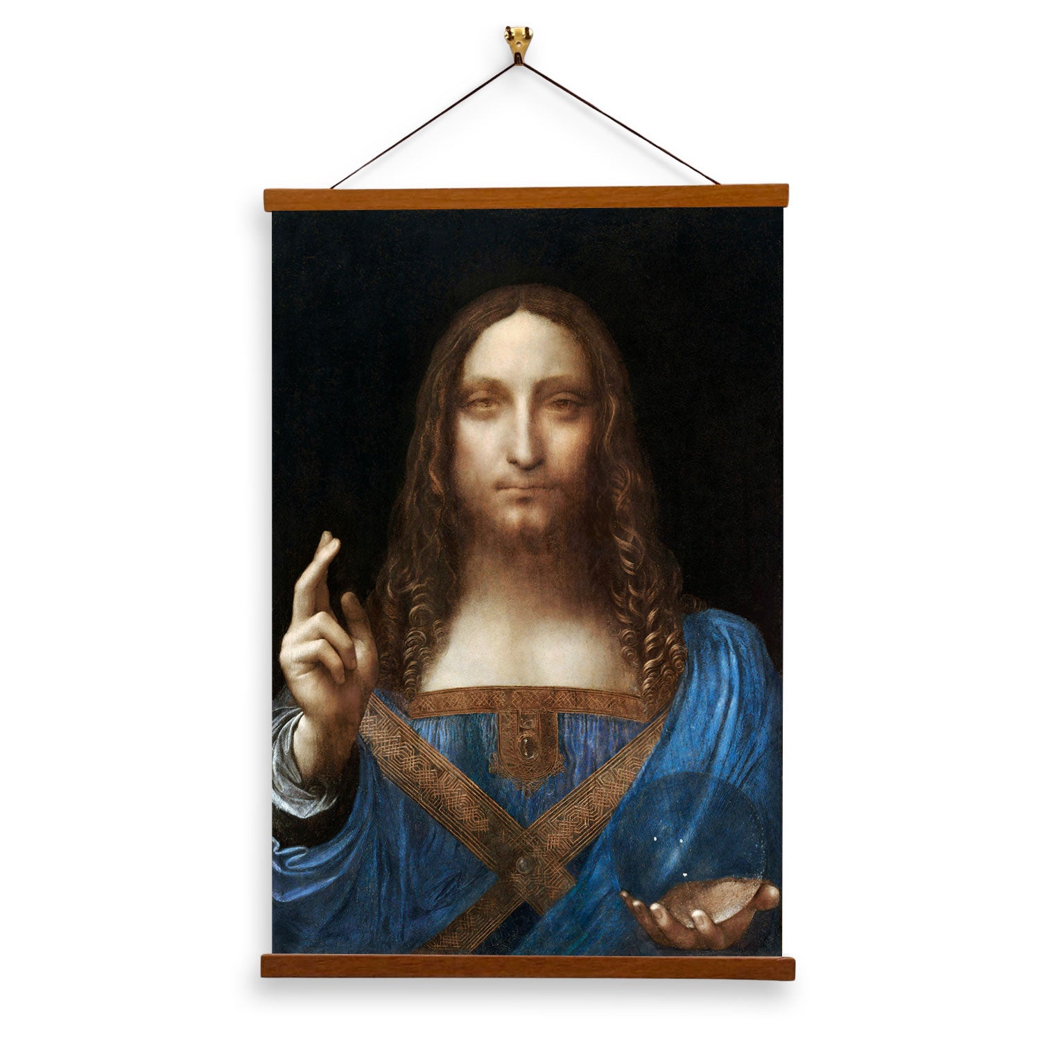 In this majestic portrayal of Christ as the Salvator Mundi (Savior of the World), Leonardo unites divine authority with human vulnerability. The crystal orb and raised hand symbolize omnipotence and blessing, while the serene expression reflects deep compassion. Rich in symbolism and layered with spiritual meaning, this masterpiece continues to inspire awe.