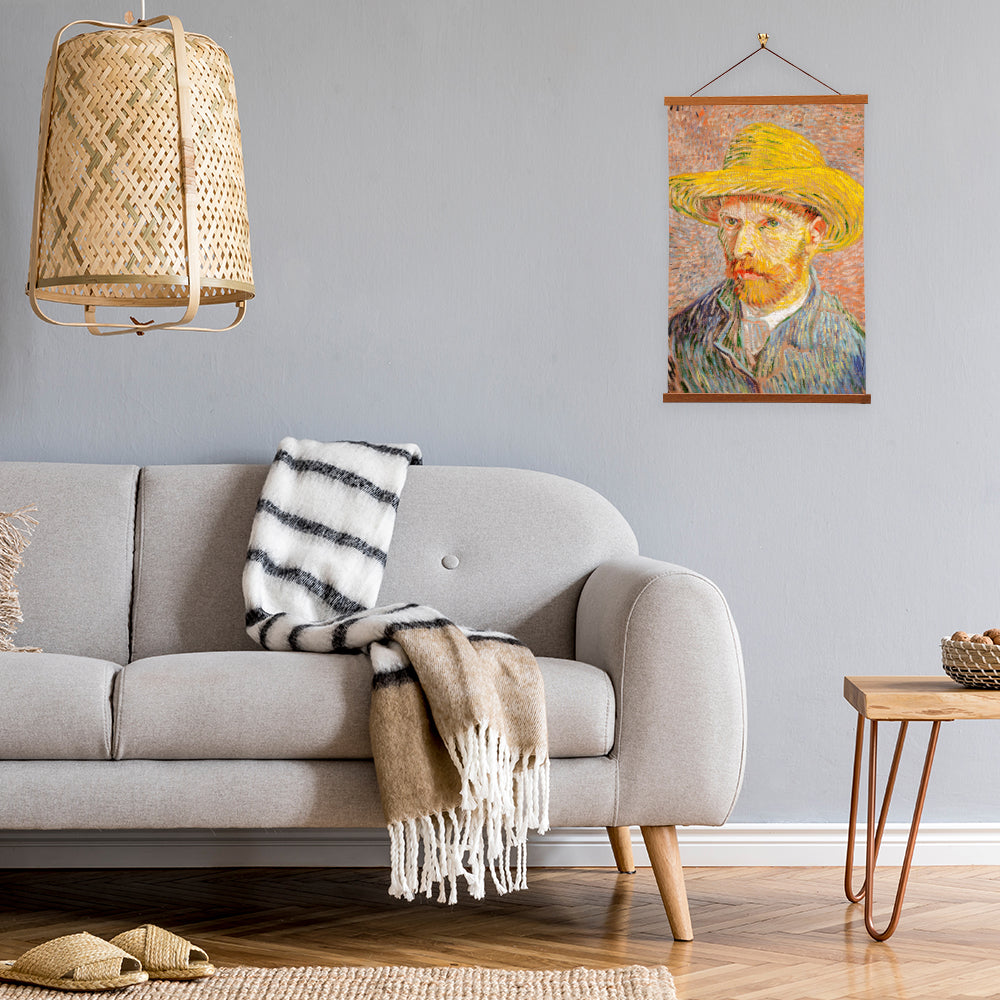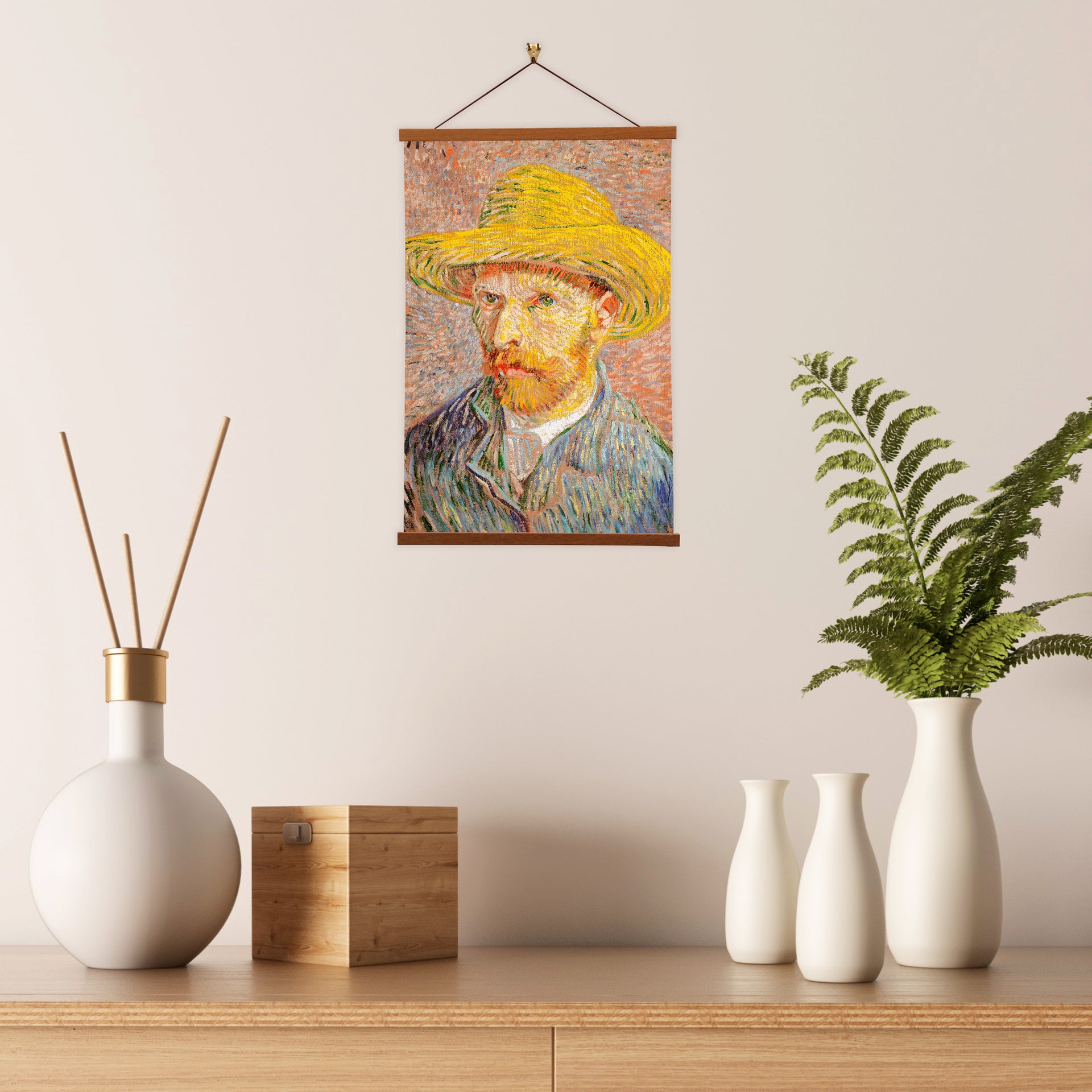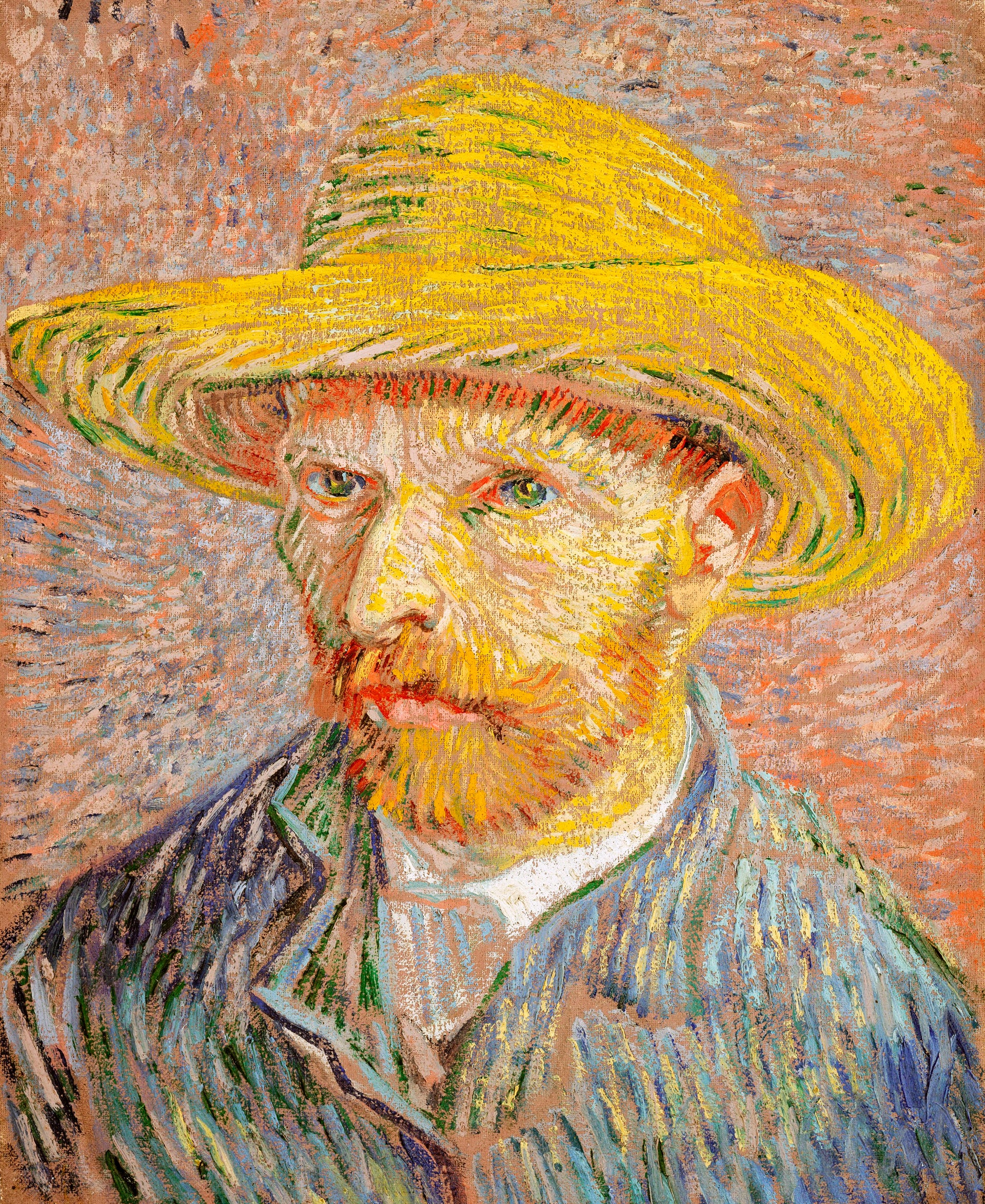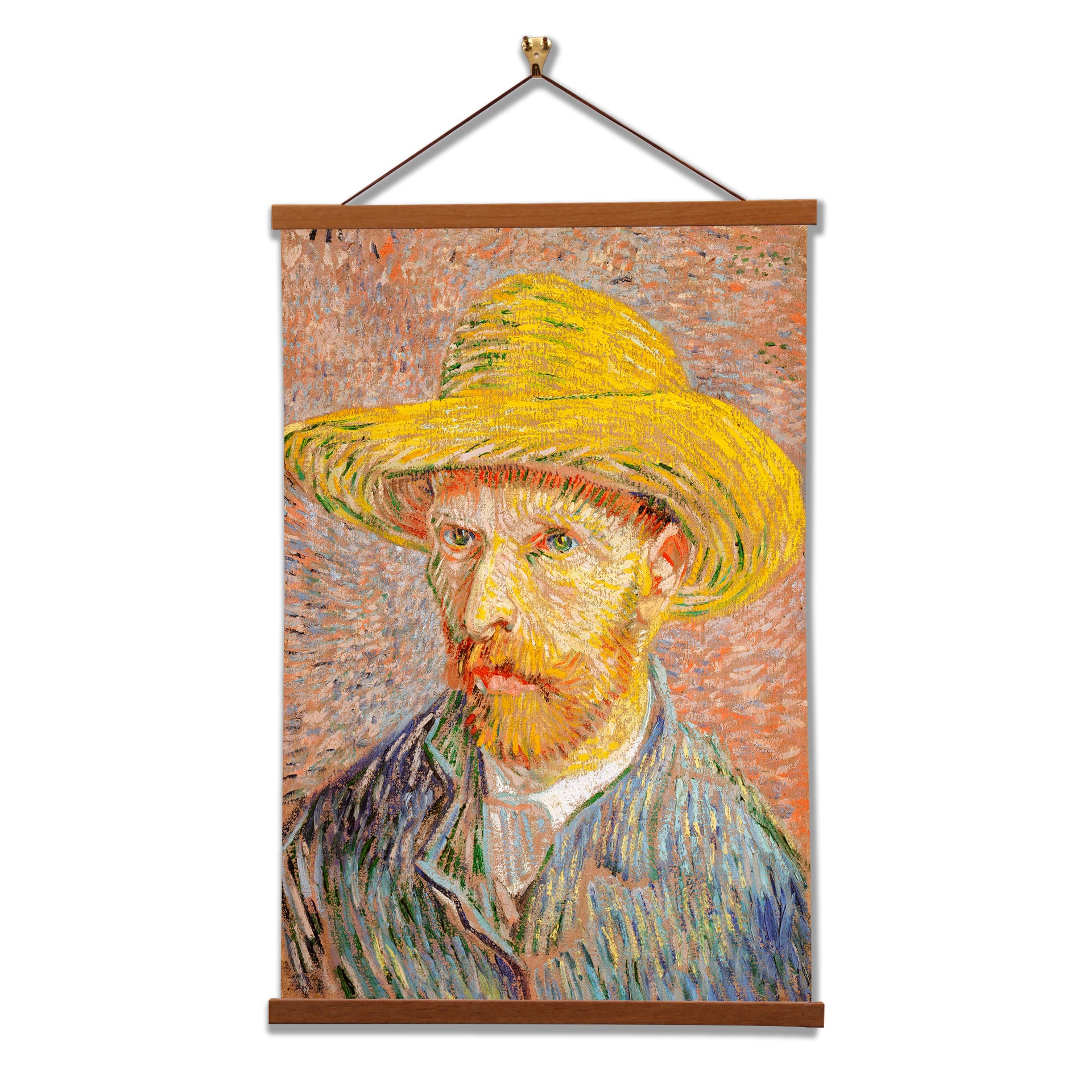 "Self-Portrait with a Straw Hat" by Vincent van Gogh, painted in 1887, showcases the artist in a contemplative mood. Van Gogh's vivid use of color and bold brushwork captures his distinctive style. The straw hat adds a touch of rustic charm to this introspective self-portrait, revealing the artist's inner emotions.