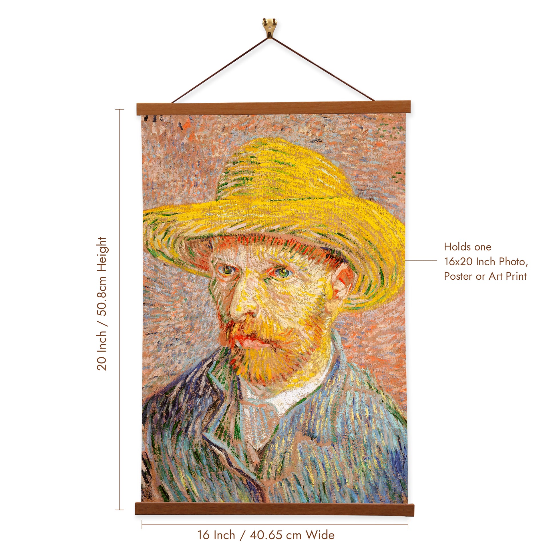 Our posters is elegantly suspended from a magnetic hanger crafted from rich walnut-colored wood, accentuated by a rustic rawhide string for a timeless and sophisticated display. Transform your space with this combination of artistry and craftsmanship.