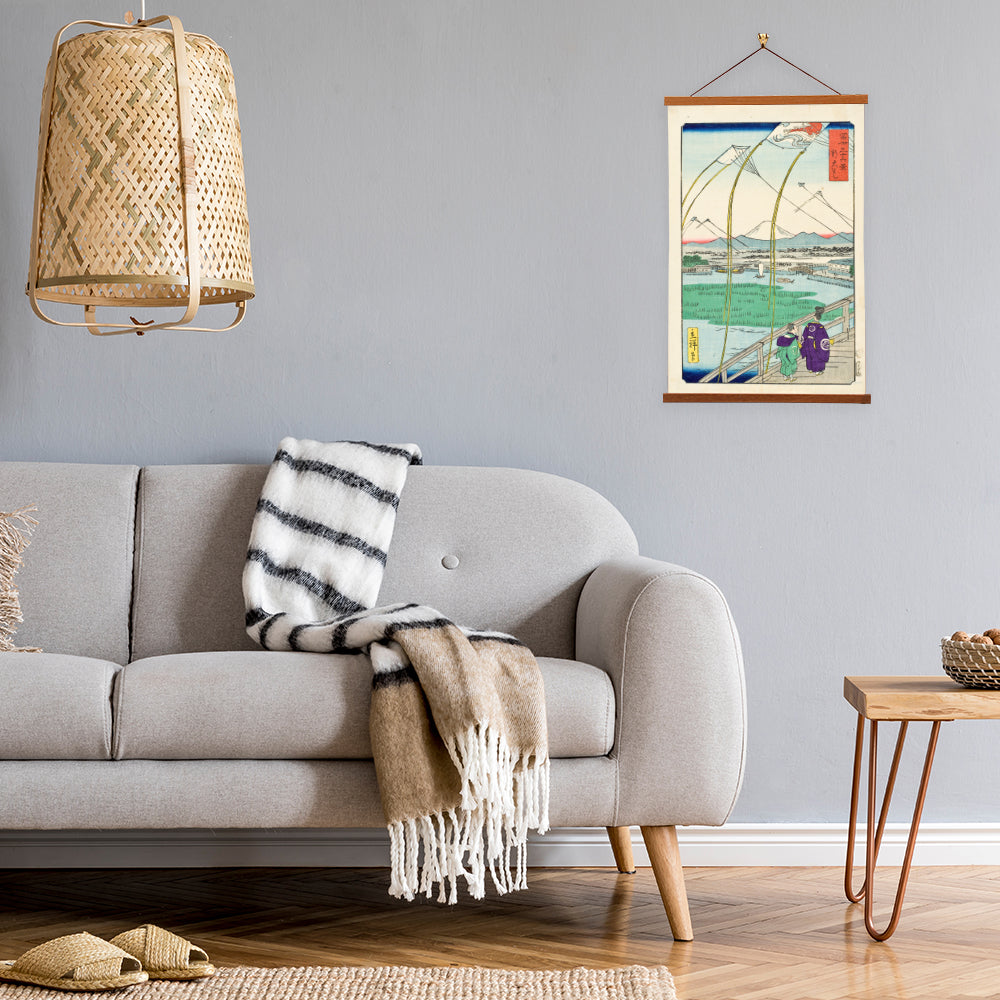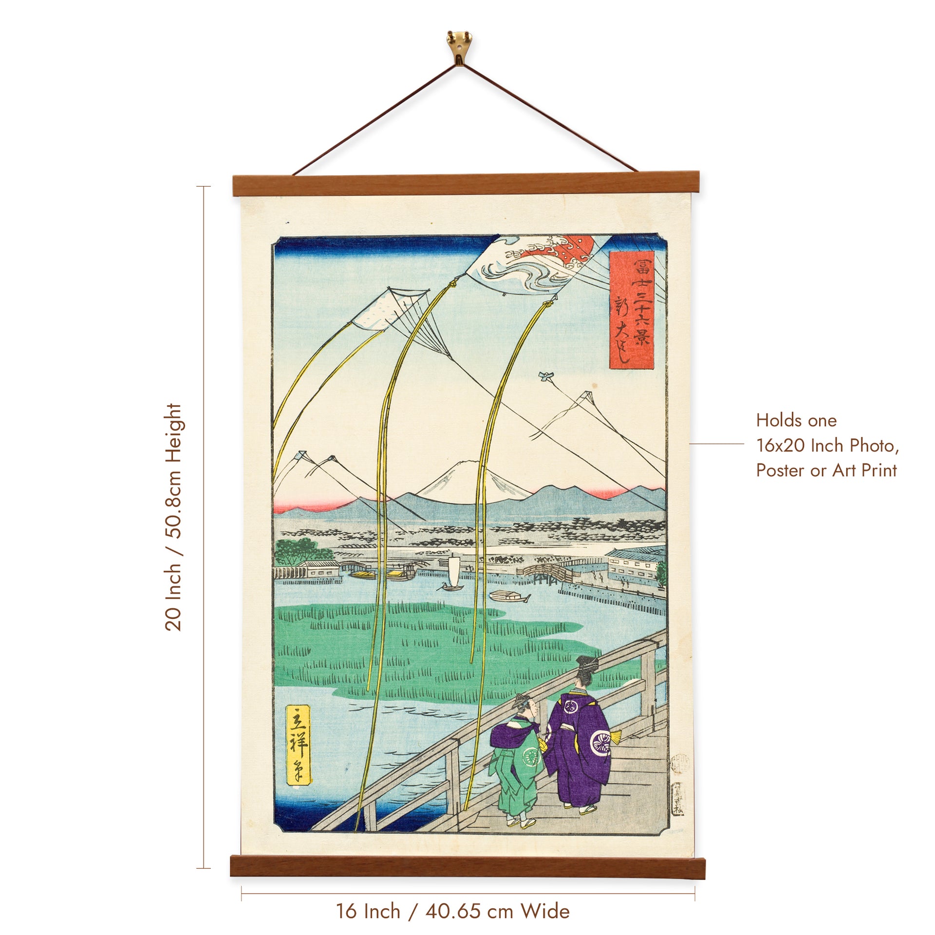 Our posters is elegantly suspended from a magnetic hanger crafted from rich walnut-colored wood, accentuated by a rustic rawhide string for a timeless and sophisticated display. Transform your space with this combination of artistry and craftsmanship.