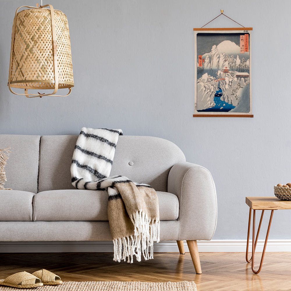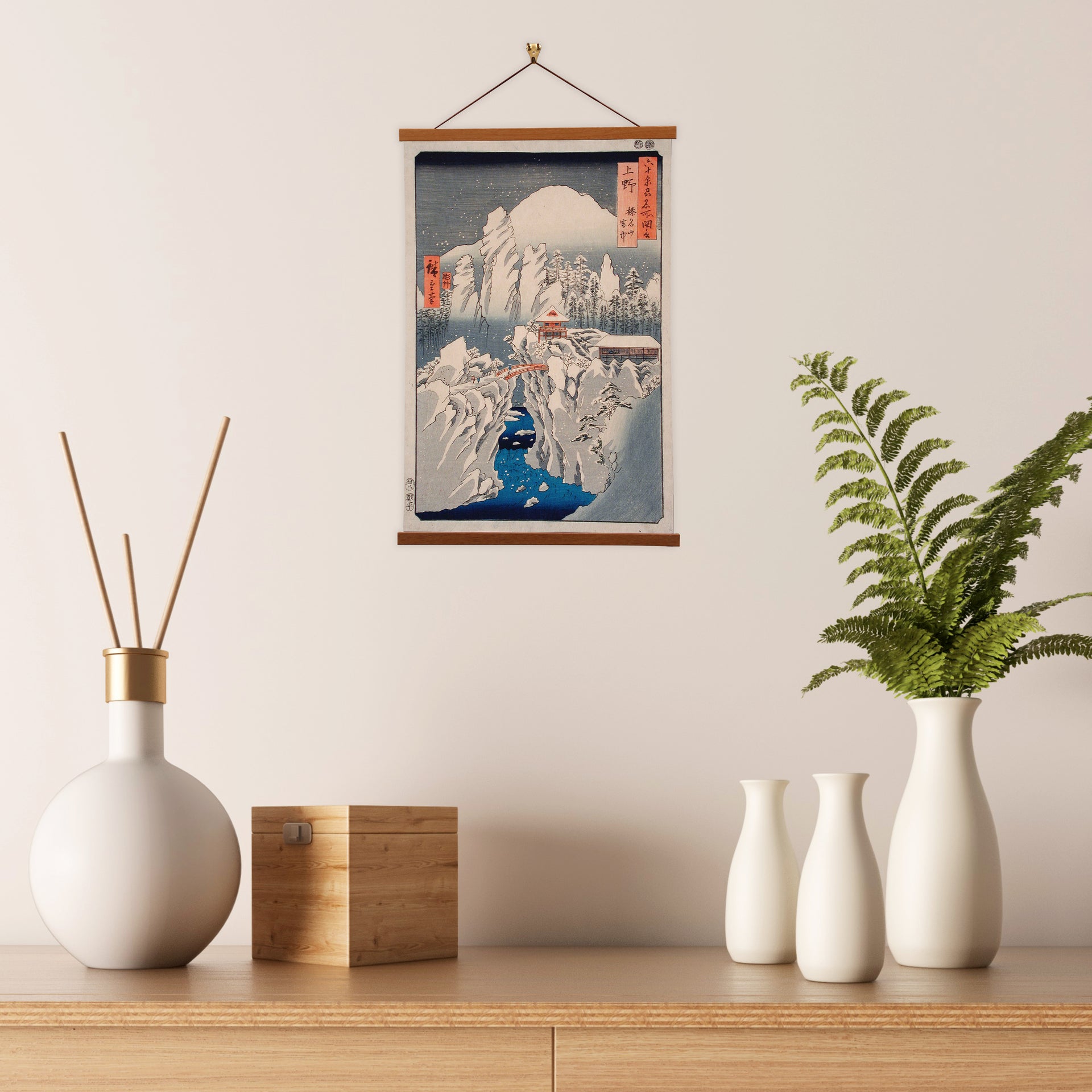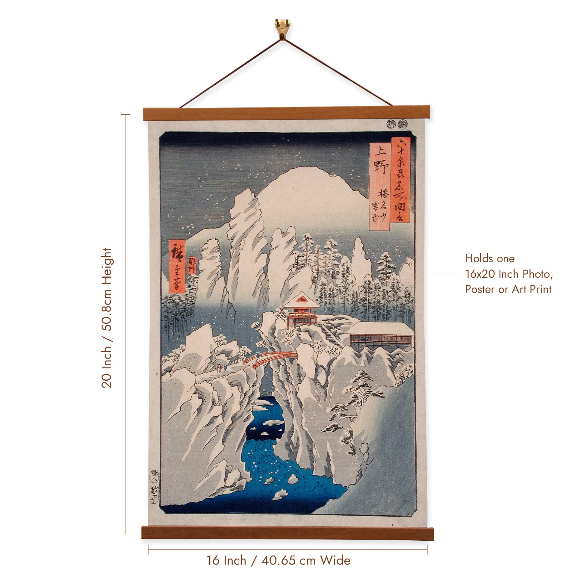 Our posters is elegantly suspended from a magnetic hanger crafted from rich walnut-colored wood, accentuated by a rustic rawhide string for a timeless and sophisticated display. Transform your space with this combination of artistry and craftsmanship.