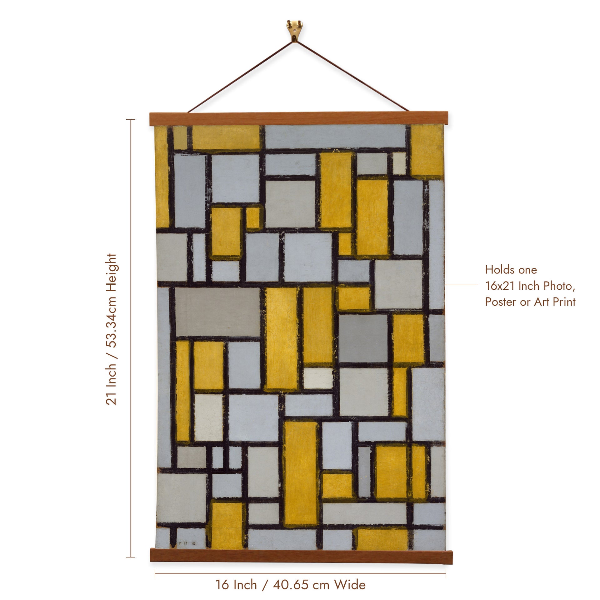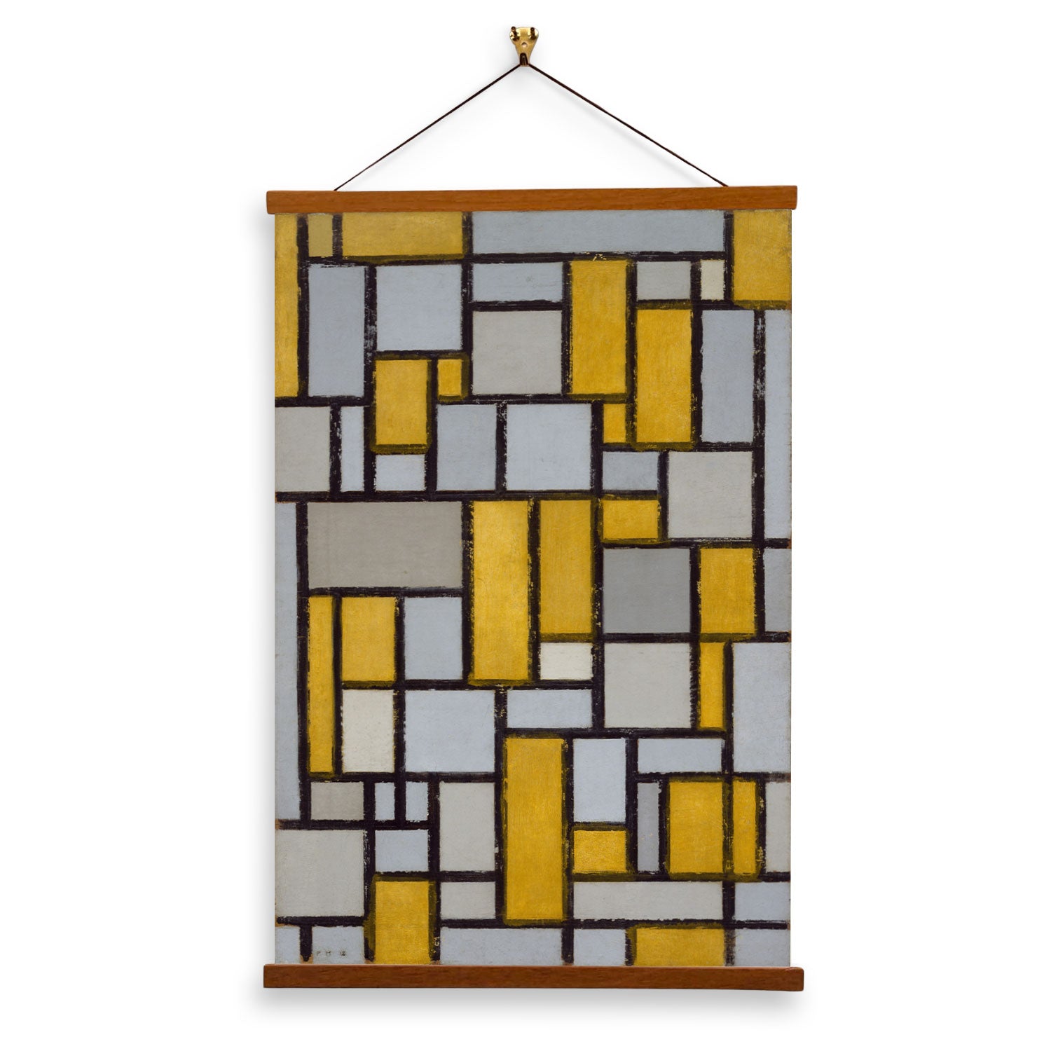 Our posters are elegantly suspended from a magnetic hanger crafted from rich walnut-colored wood, accentuated by a rustic rawhide string for a timeless and sophisticated display. Transform your space with this combination of artistry and craftsmanship.