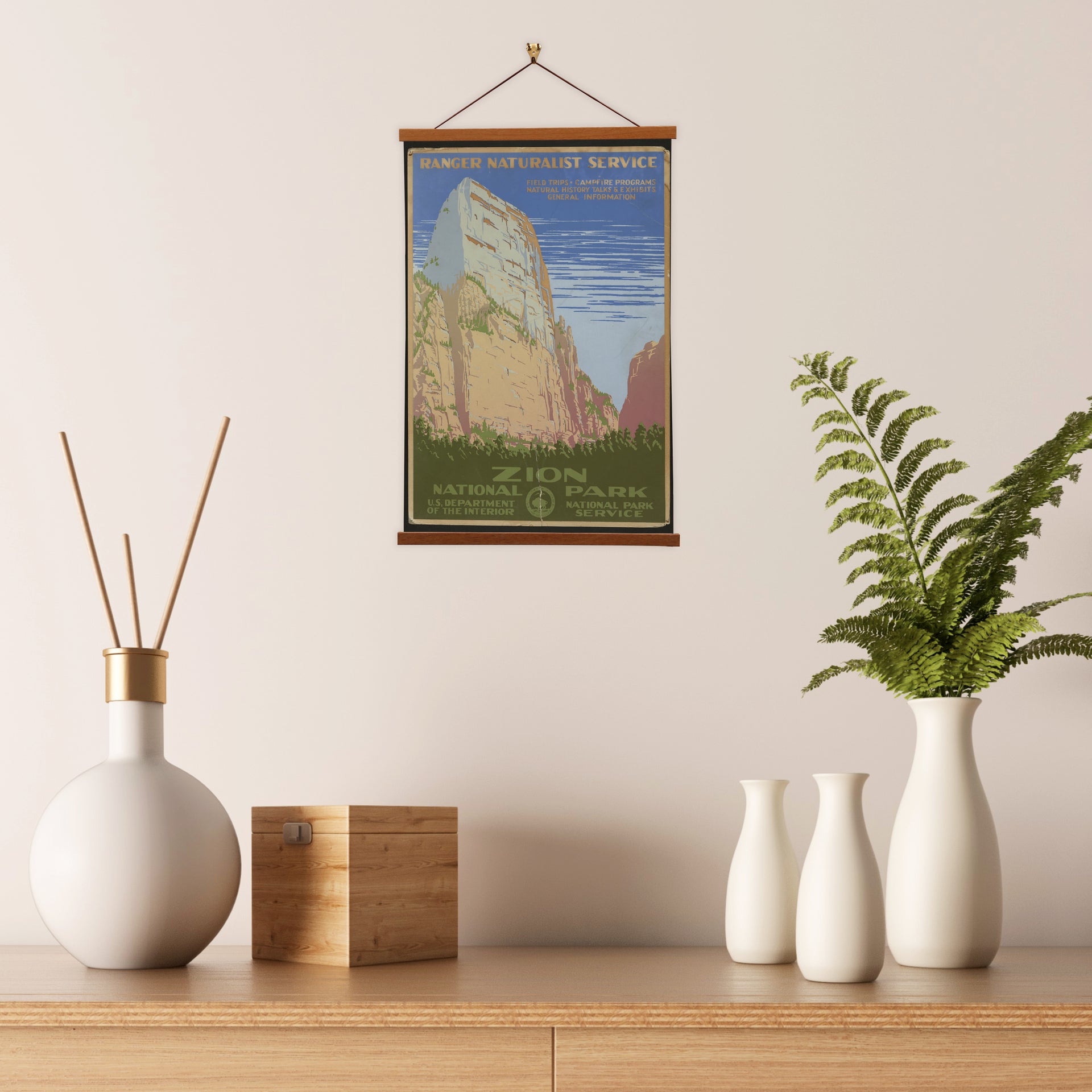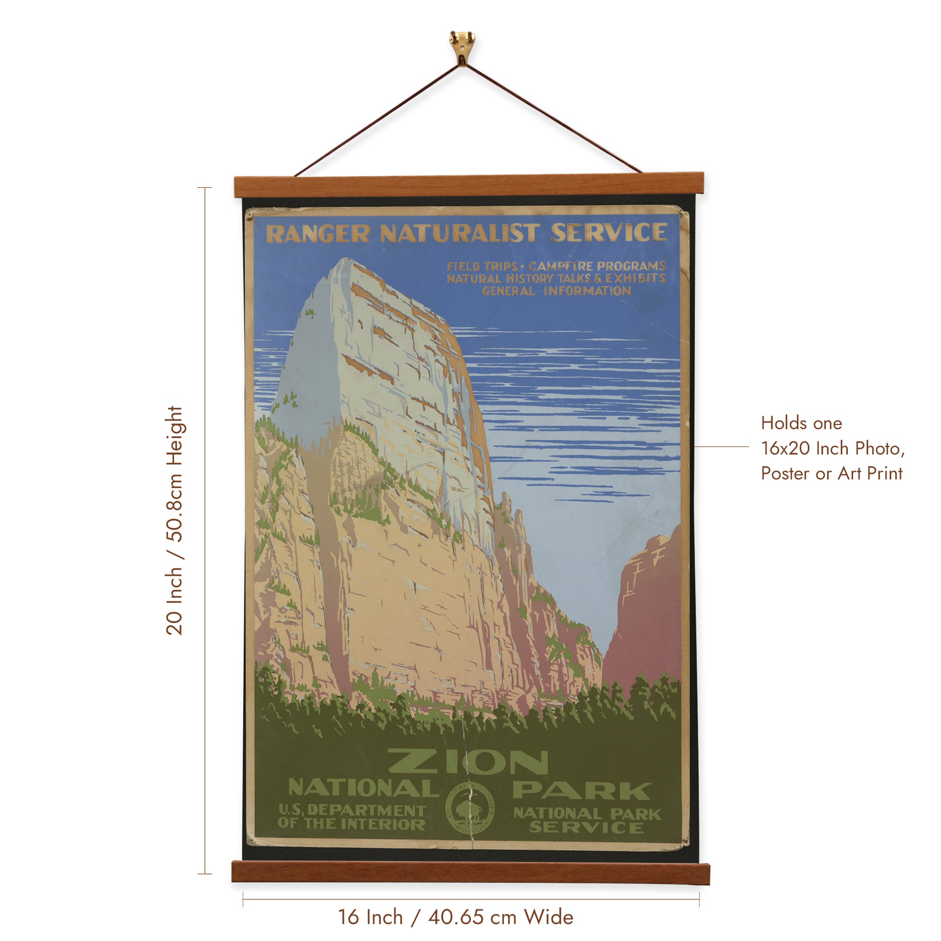 Experience the awe-inspiring beauty of Zion National Park with the vintage travel poster, "Zion National Park: Ranger Naturalist Service." This evocative artwork pays homage to the Ranger Naturalist Service's dedication to guiding and educating visitors through the park's majestic terrain. The poster vividly captures the essence of Zion's towering red rock formations and verdant canyons. Transport yourself to this natural wonder and let the spirit of exploration come alive. Display this timeless piece in your space to infuse it with the magic of Zion National Park. Celebrate the legacy of preservation and education with this iconic travel poster. Order yours today!