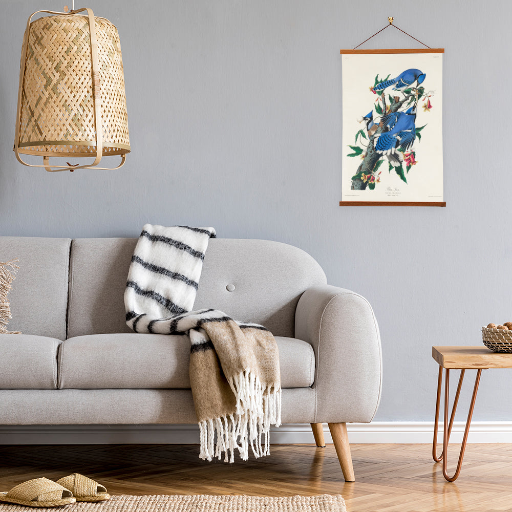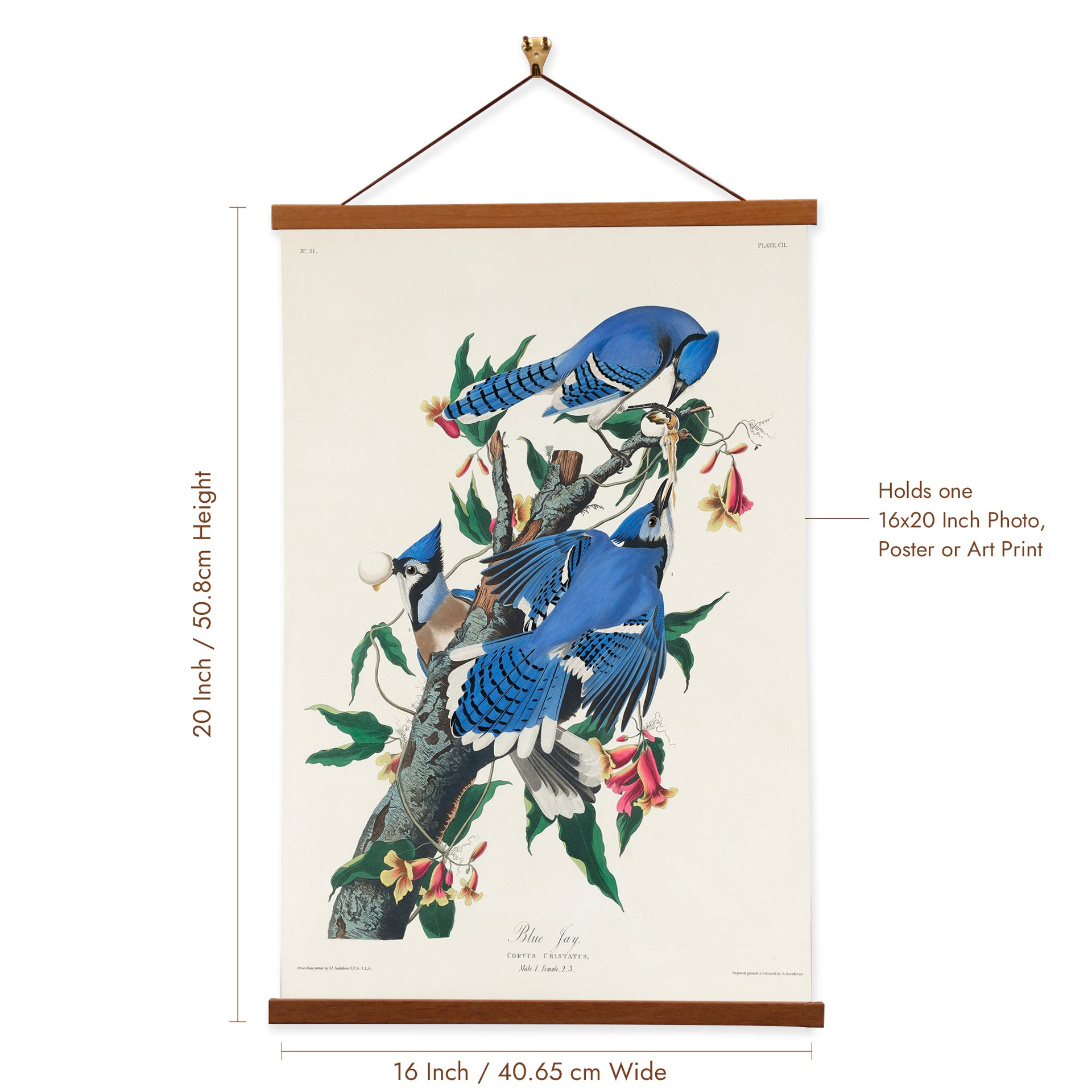 Our posters are elegantly suspended from a magnetic hanger crafted from rich walnut-colored wood, accentuated by a rustic rawhide string for a timeless and sophisticated display. Transform your space with this combination of artistry and craftsmanship.
