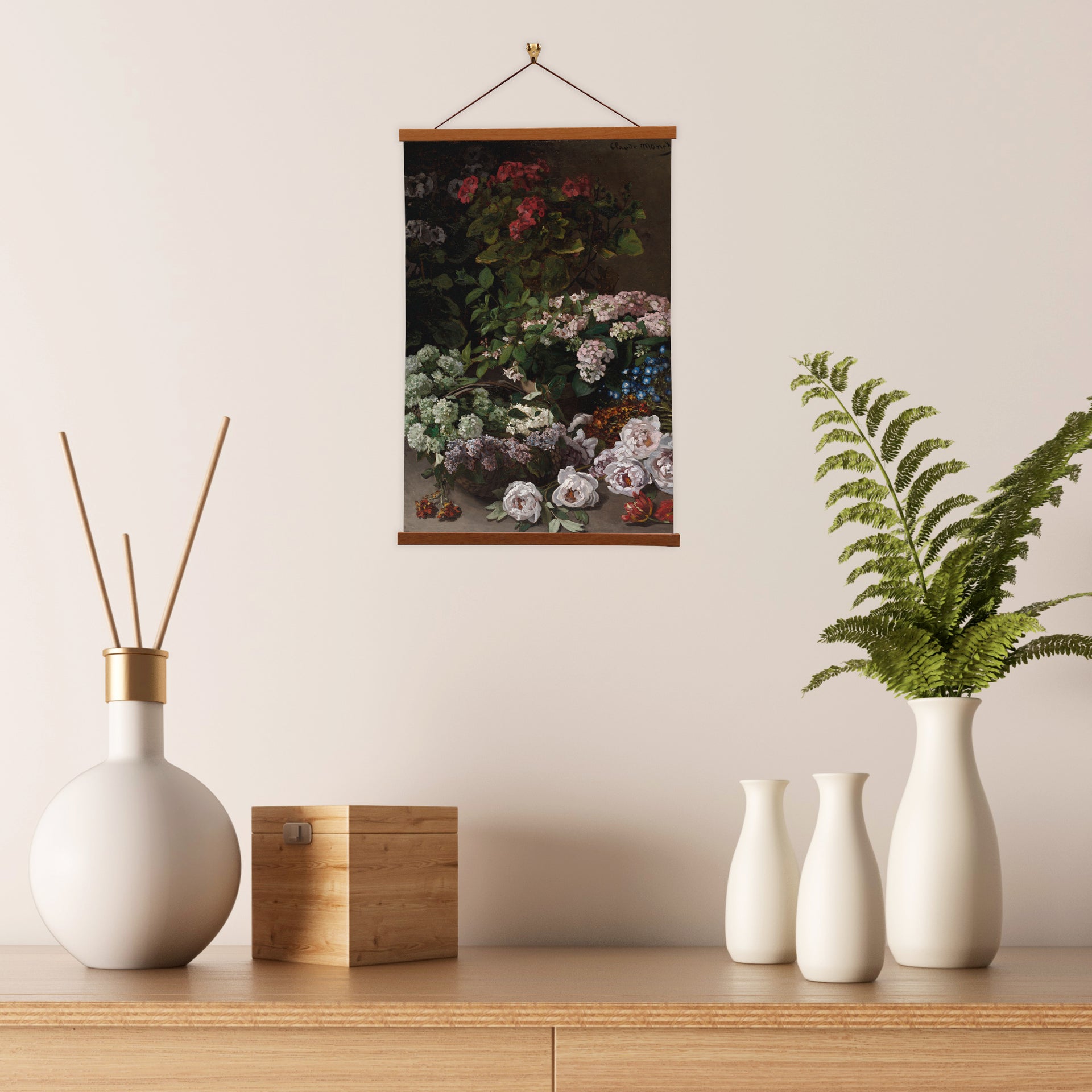 "Spring Flowers" (1864) by Claude Monet is a delightful masterpiece capturing the essence of a vibrant garden in full bloom. Monet's skilled use of light and color creates a stunning visual symphony of delicate blossoms, evoking the freshness and beauty of spring. This work is a testament to Monet's early fascination with the interplay of light and nature.