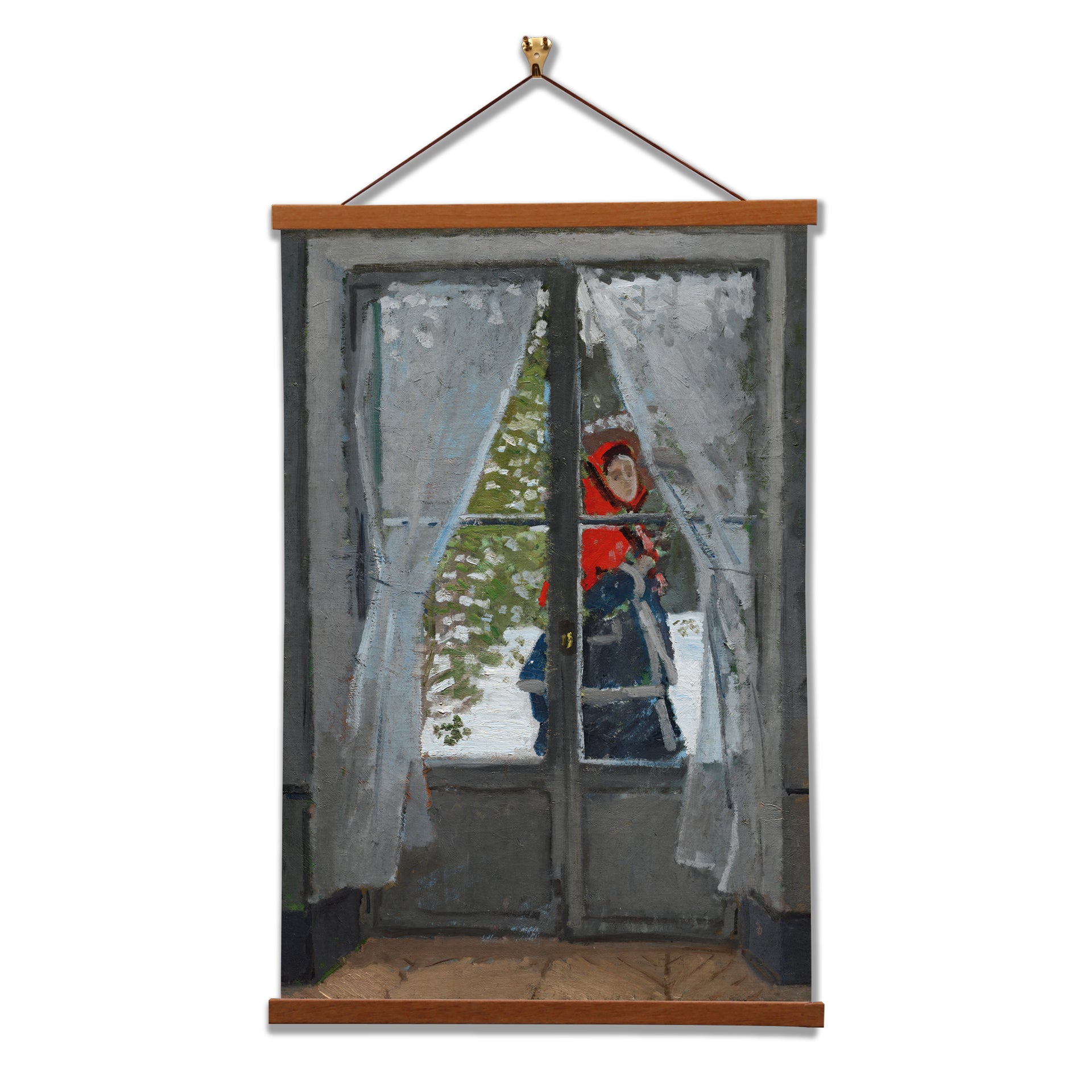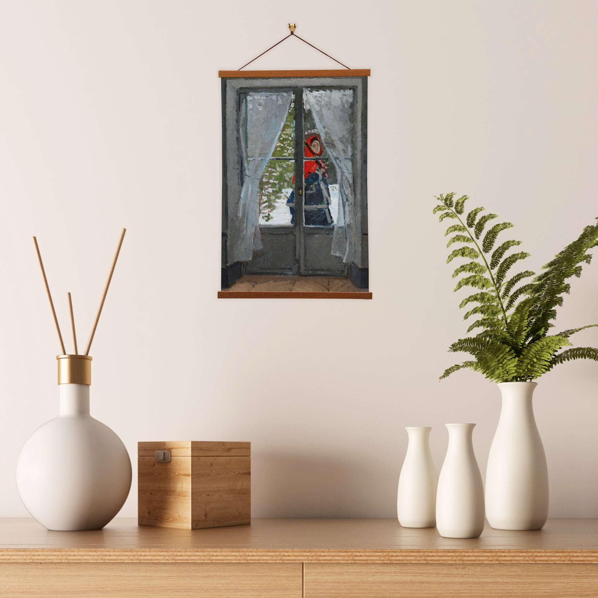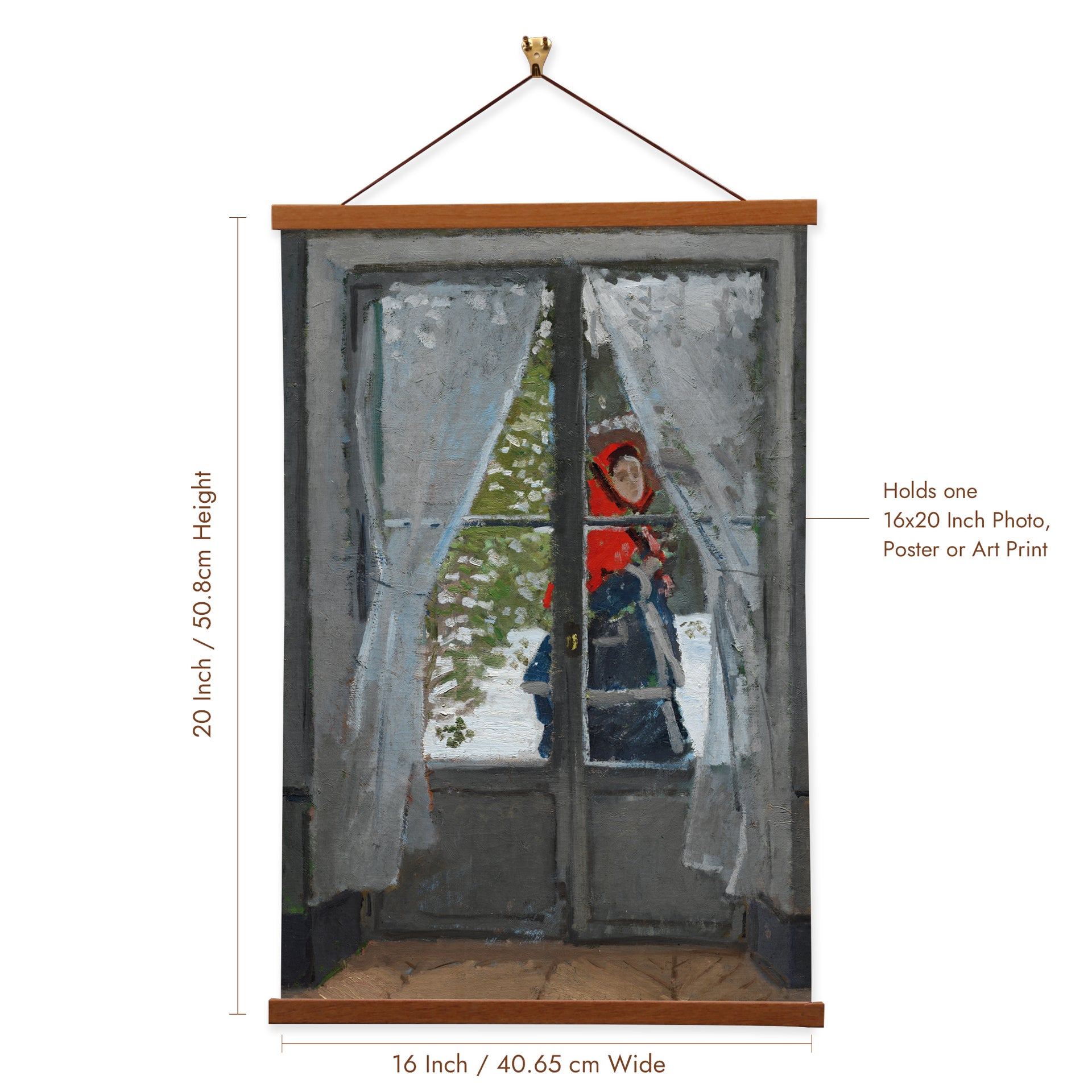 Our posters is elegantly suspended from a magnetic hanger crafted from rich walnut-colored wood, accentuated by a rustic rawhide string for a timeless and sophisticated display. Transform your space with this combination of artistry and craftsmanship.