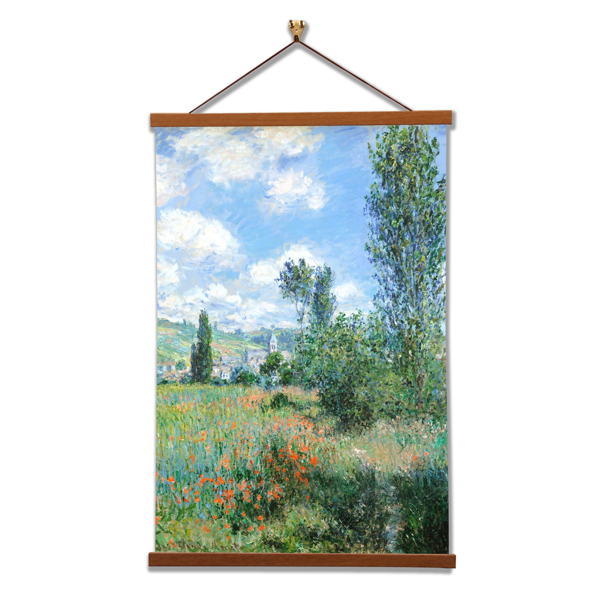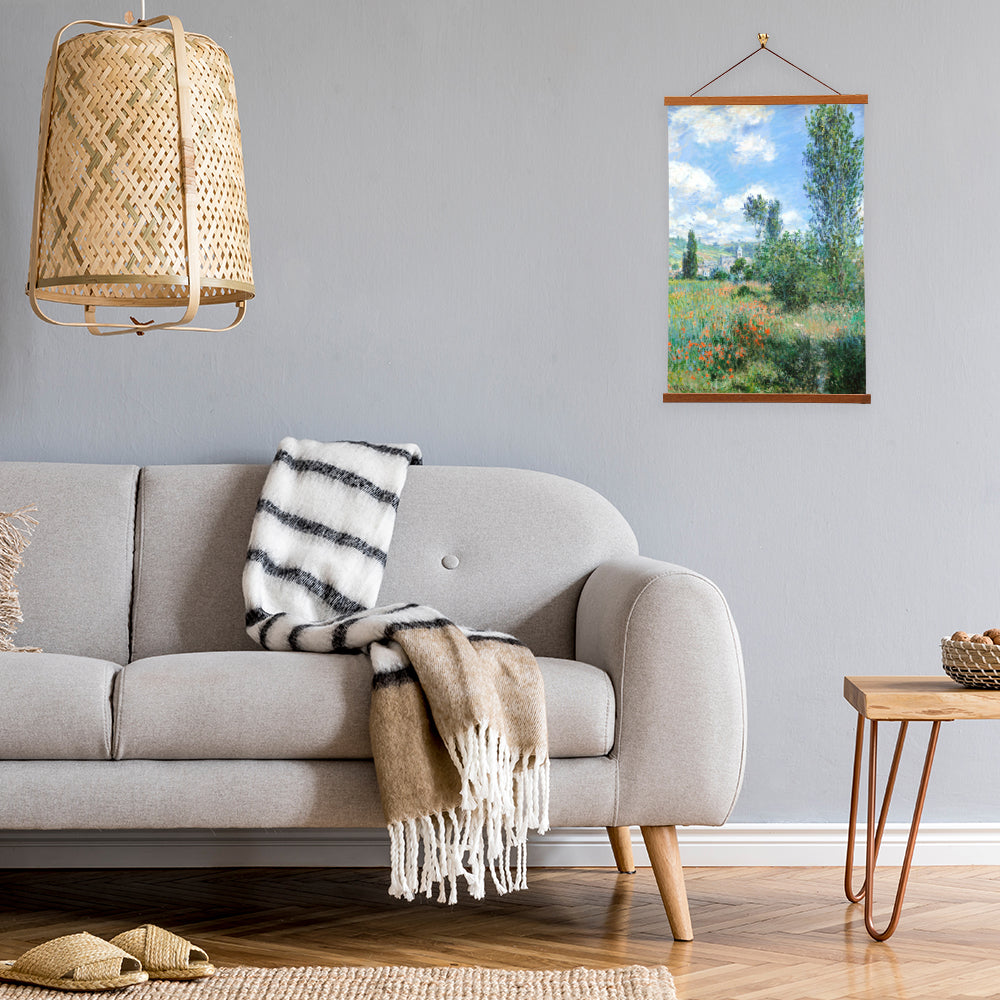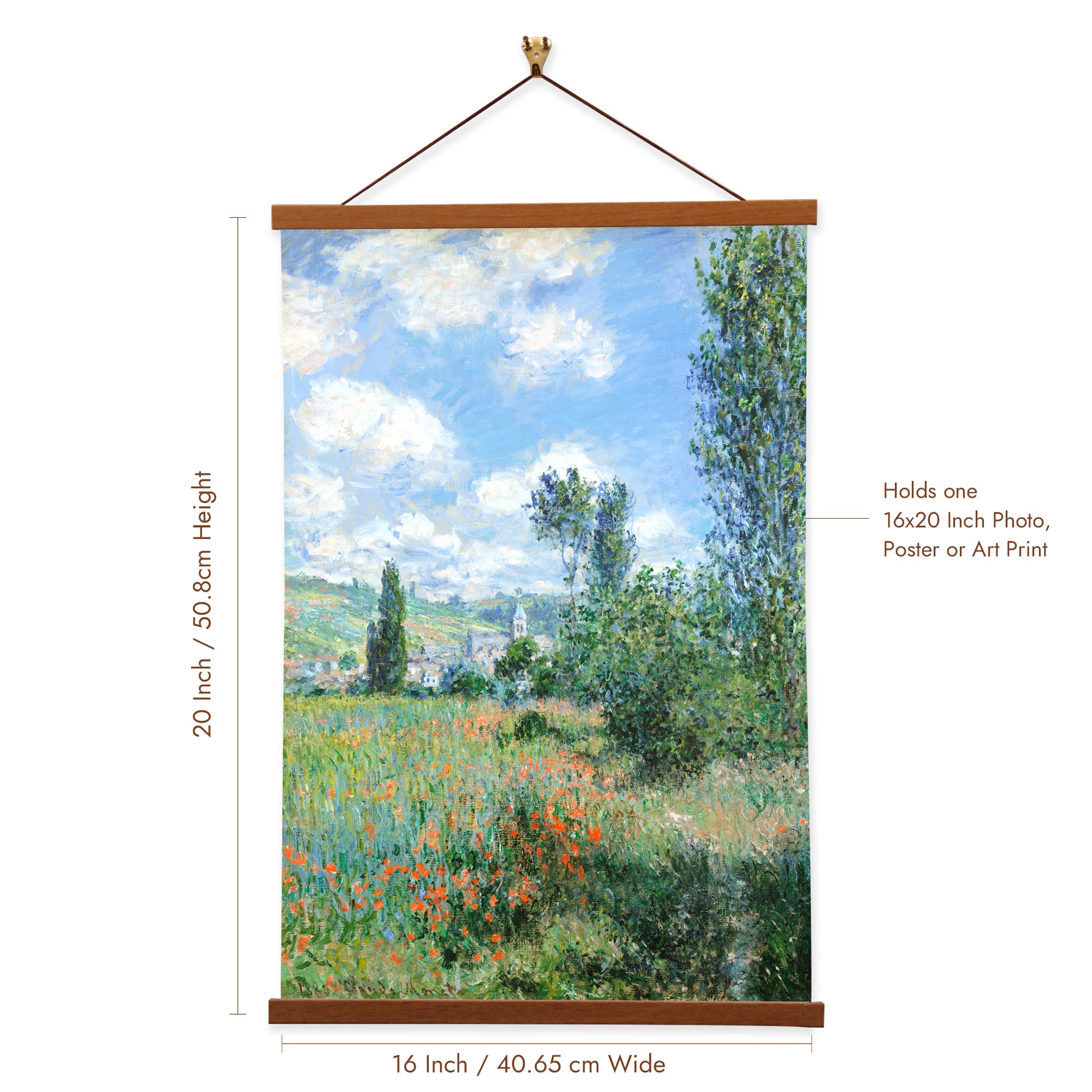 Our posters is elegantly suspended from a magnetic hanger crafted from rich walnut-colored wood, accentuated by a rustic rawhide string for a timeless and sophisticated display. Transform your space with this combination of artistry and craftsmanship.