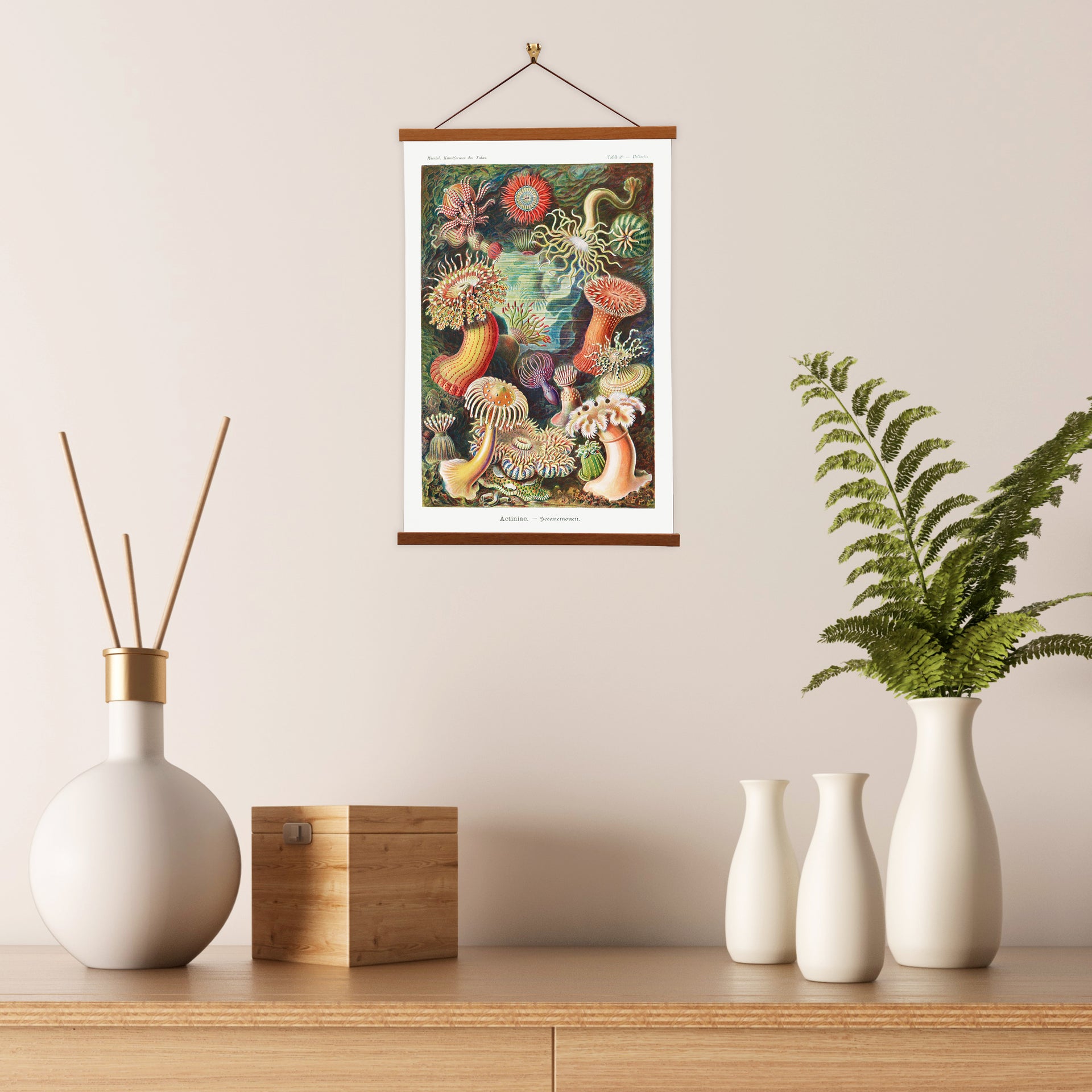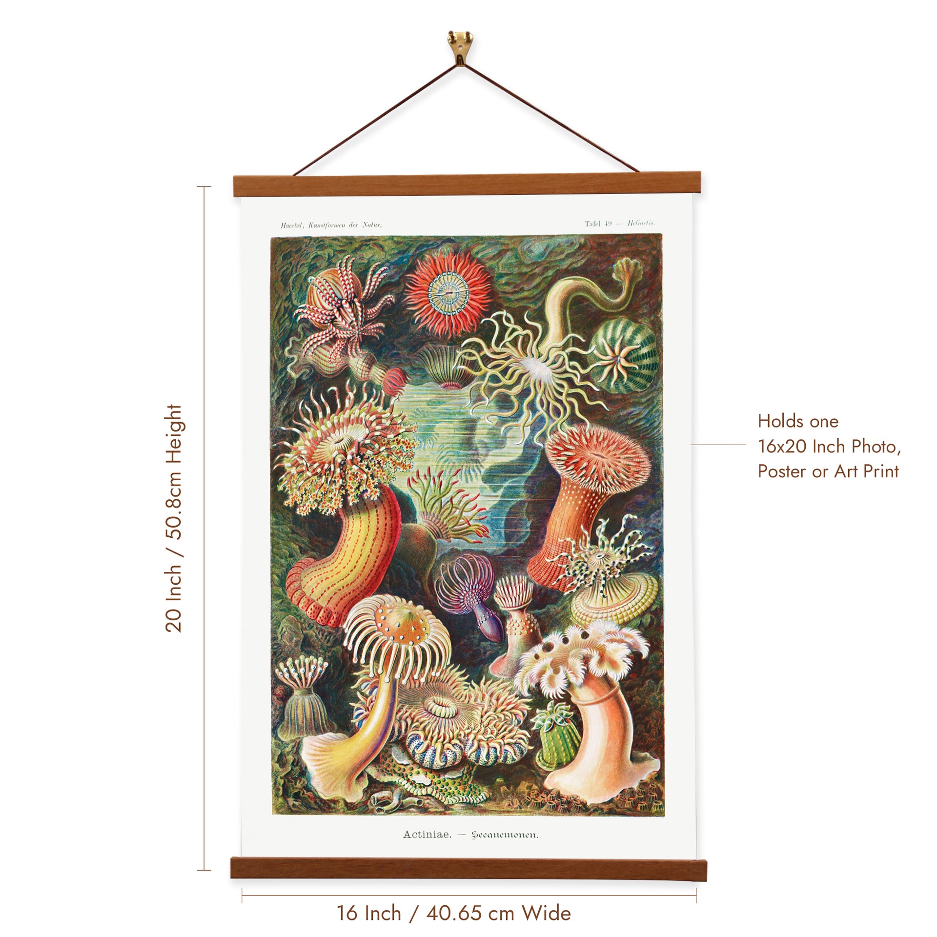 Our posters is elegantly suspended from a magnetic hanger crafted from rich walnut-colored wood, accentuated by a rustic rawhide string for a timeless and sophisticated display. Transform your space with this combination of artistry and craftsmanship.