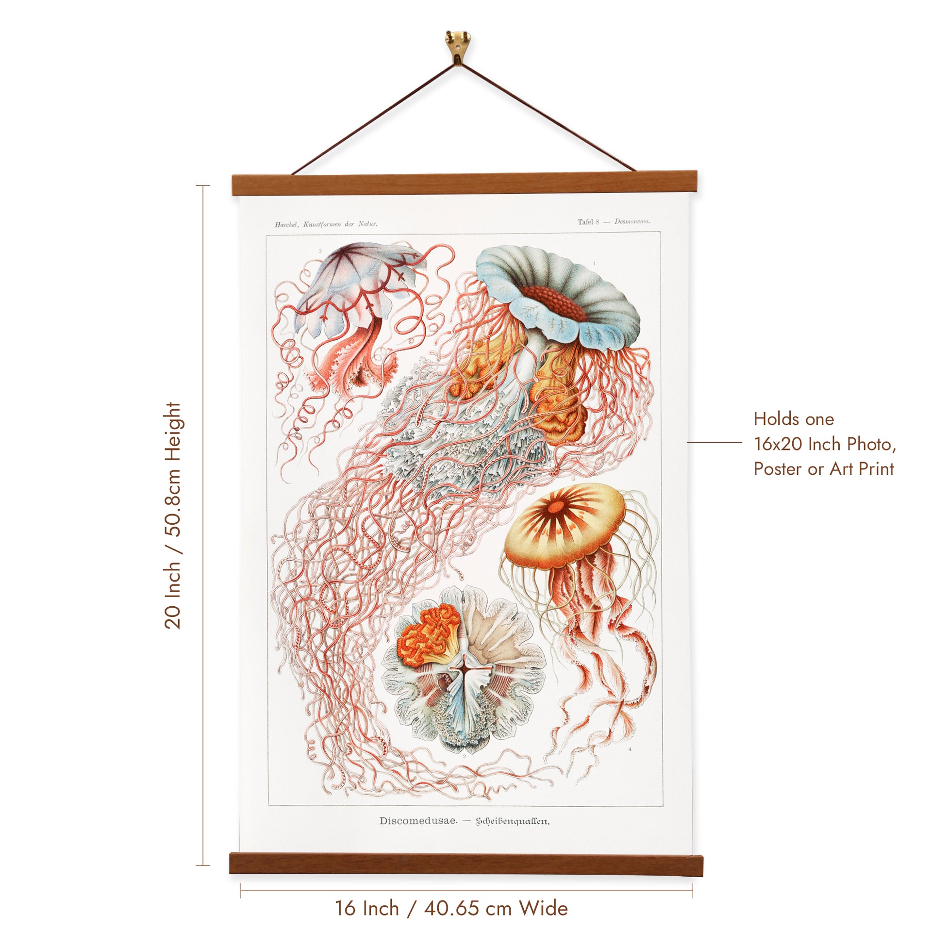 Our posters is elegantly suspended from a magnetic hanger crafted from rich walnut-colored wood, accentuated by a rustic rawhide string for a timeless and sophisticated display. Transform your space with this combination of artistry and craftsmanship.