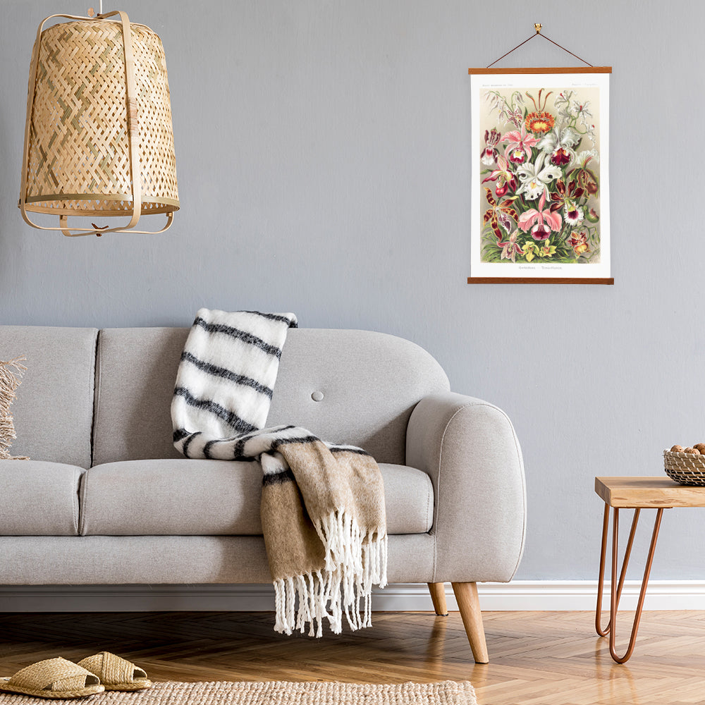 Our posters is elegantly suspended from a magnetic hanger crafted from rich walnut-colored wood, accentuated by a rustic rawhide string for a timeless and sophisticated display. Transform your space with this combination of artistry and craftsmanship.