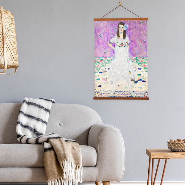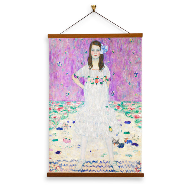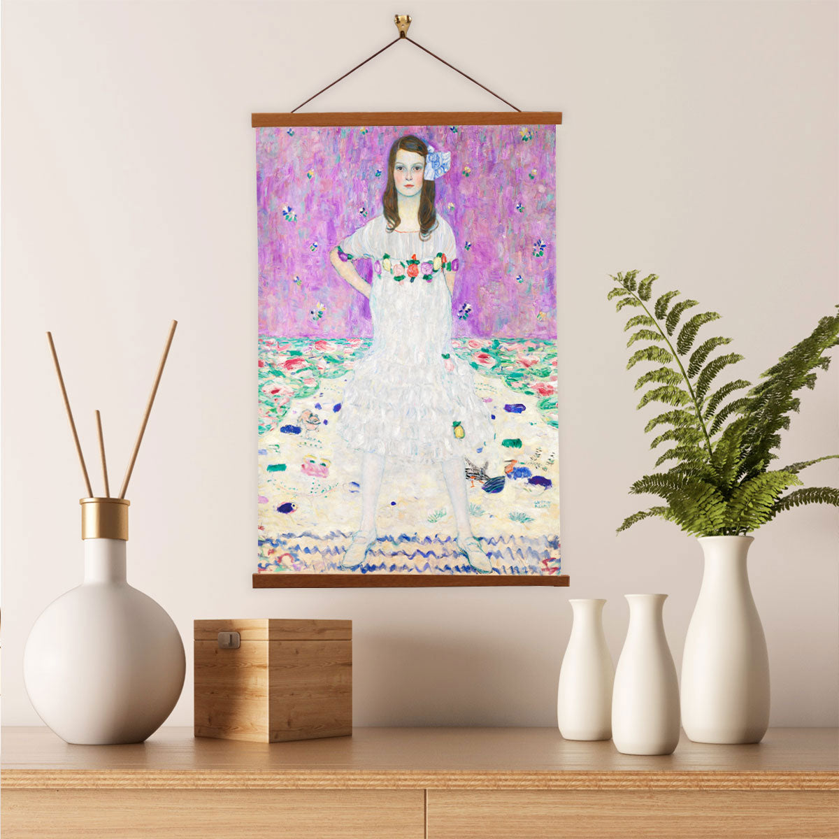 Lively and expressive, this portrait captures youthful confidence through bold color and rhythmic pattern. Klimt celebrates individuality and movement, blending realism with decorative brilliance.