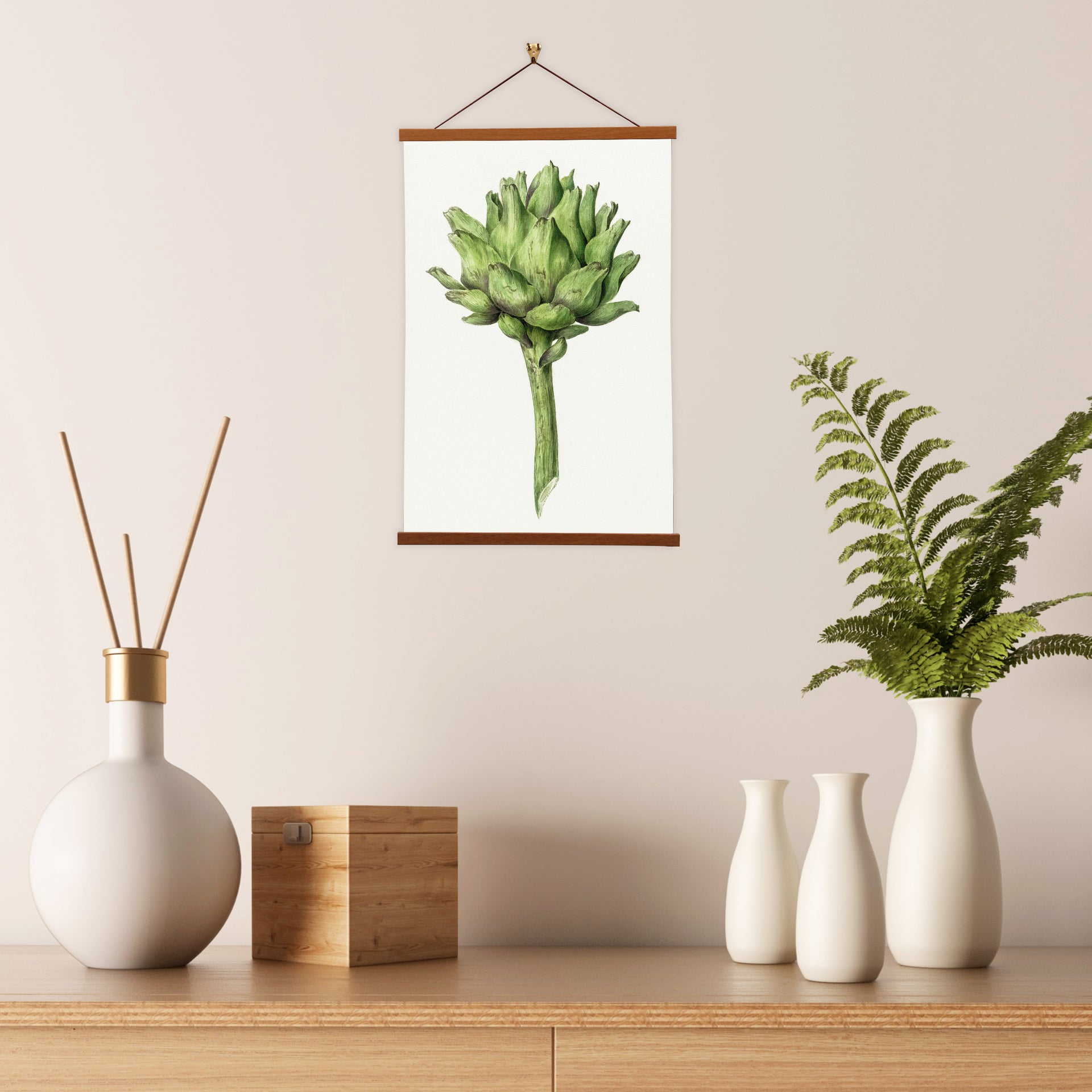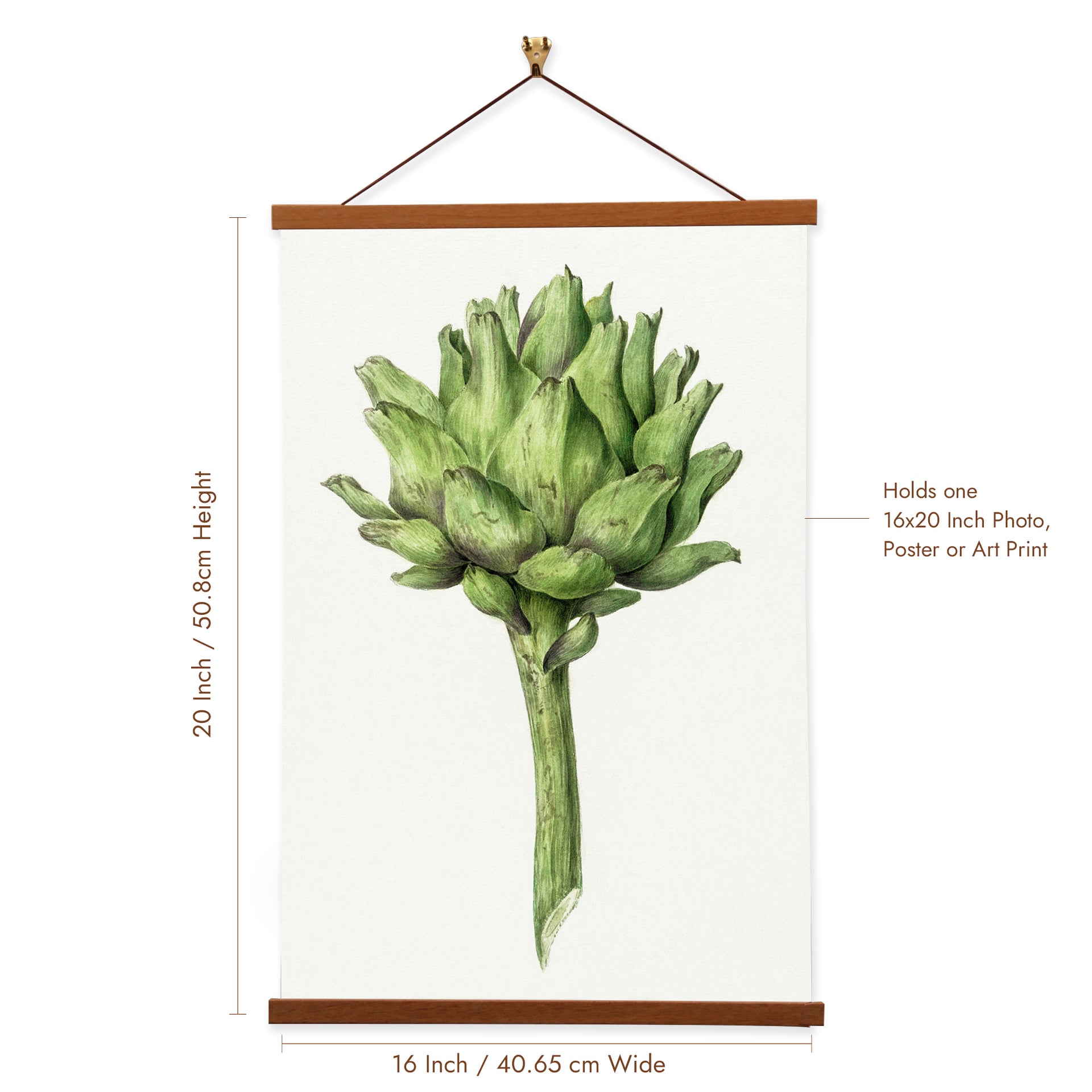Our posters are elegantly suspended from a magnetic hanger crafted from rich walnut-colored wood, accentuated by a rustic rawhide string for a timeless and sophisticated display. Transform your space with this combination of artistry and craftsmanship.