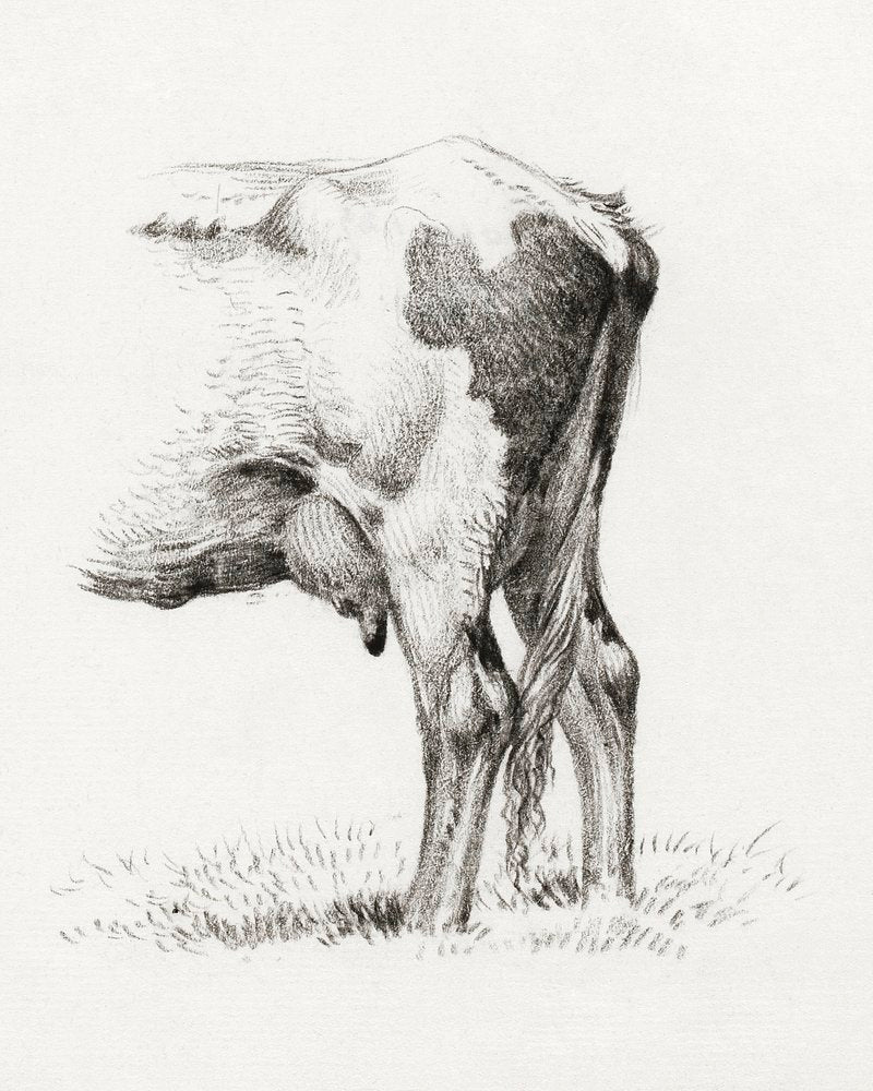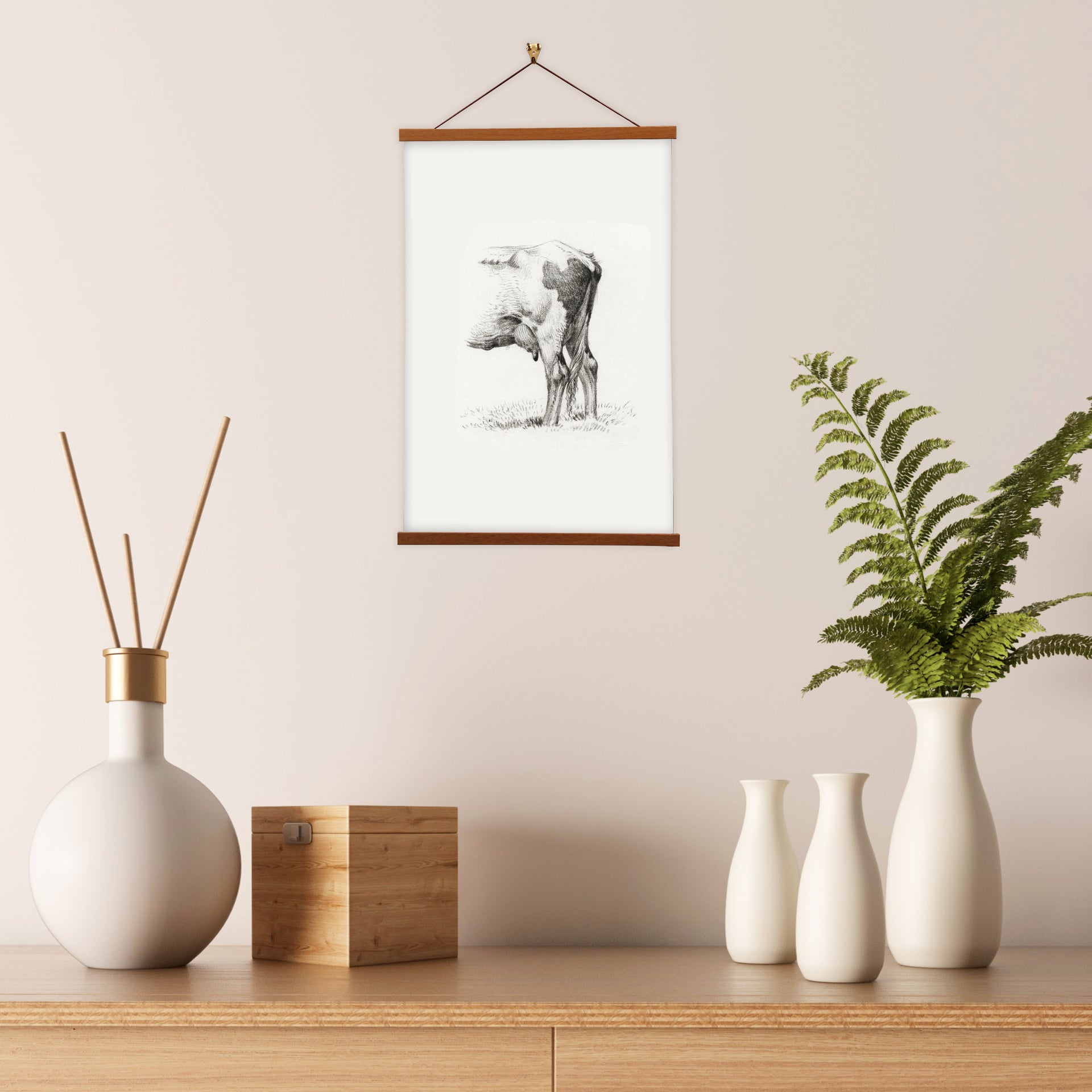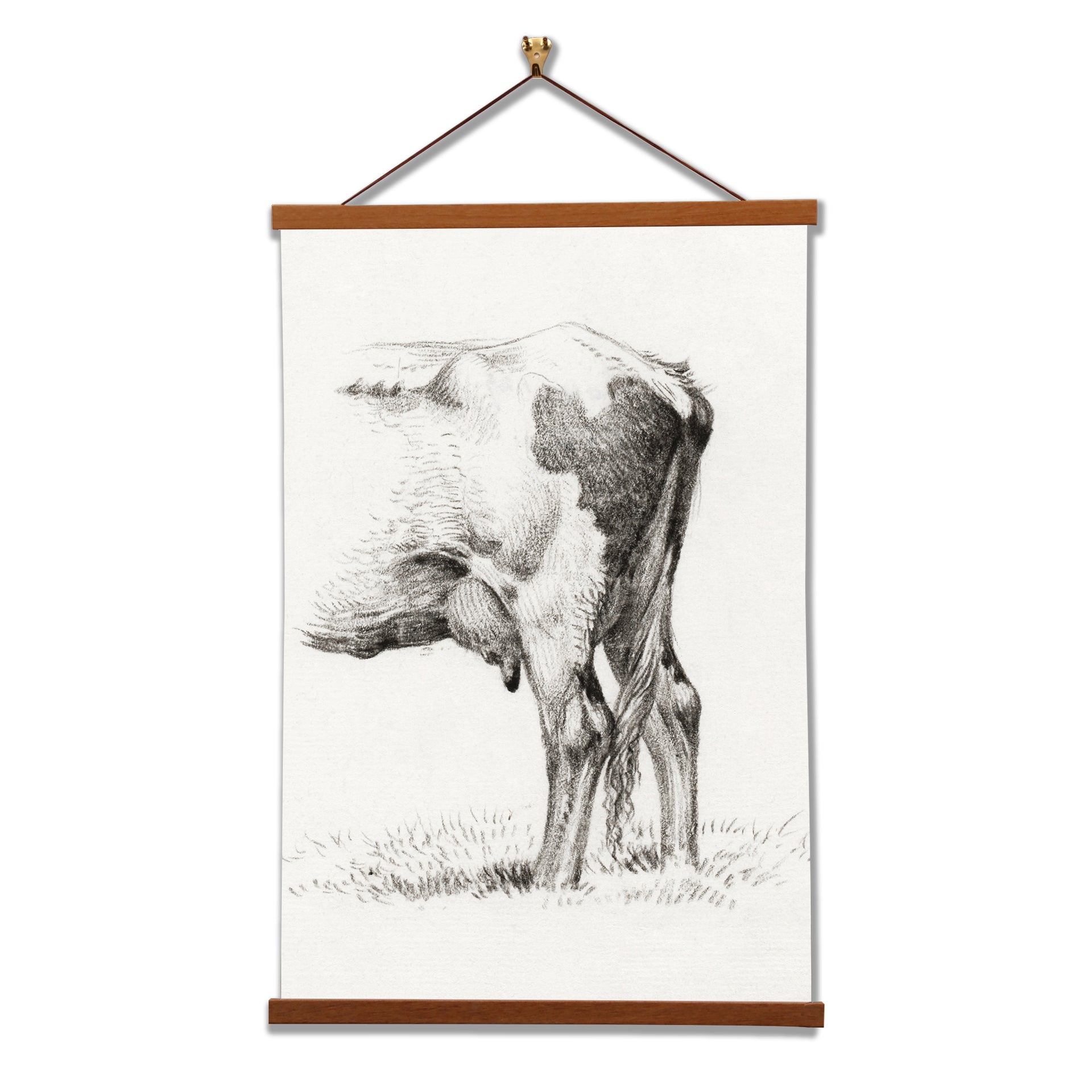 Bring rustic charm to your décor with Jean Bernard's 1818 poster showcasing a cow's back legs. This vintage illustration captures the gentle giants' strength and grace in expressive lines. The black and white design complements any décor, sparking conversations. Bernard's play with light and shadow adds depth, while the precise rendering of the cow's legs and hooves exudes power and beauty. Perfect for any room, it's an ideal gift for farmers, ranchers, or animal enthusiasts.