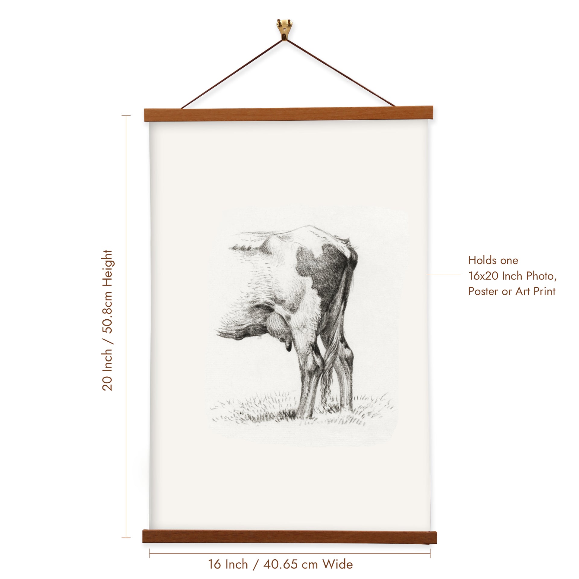 Our posters is elegantly suspended from a magnetic hanger crafted from rich walnut-colored wood, accentuated by a rustic rawhide string for a timeless and sophisticated display. Transform your space with this combination of artistry and craftsmanship.