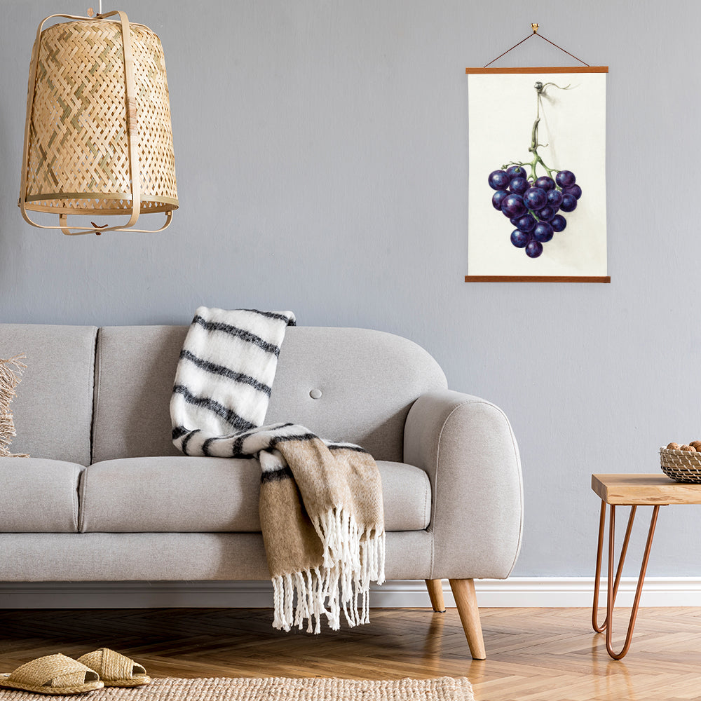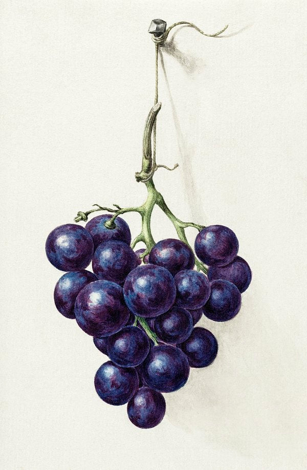 Add a touch of sophistication to your home décor with this stunning poster of a bunch of blue grapes by Jean Bernard. This classic painting from 1775 is a masterpiece of realism, capturing the beauty and simplicity of these humble fruits. Bernard's use of light and shadow is masterful, and he brings out the subtle nuances of the grapes' colors and textures with incredible skill. The grapes are so lifelike that you can almost taste their sweetness.