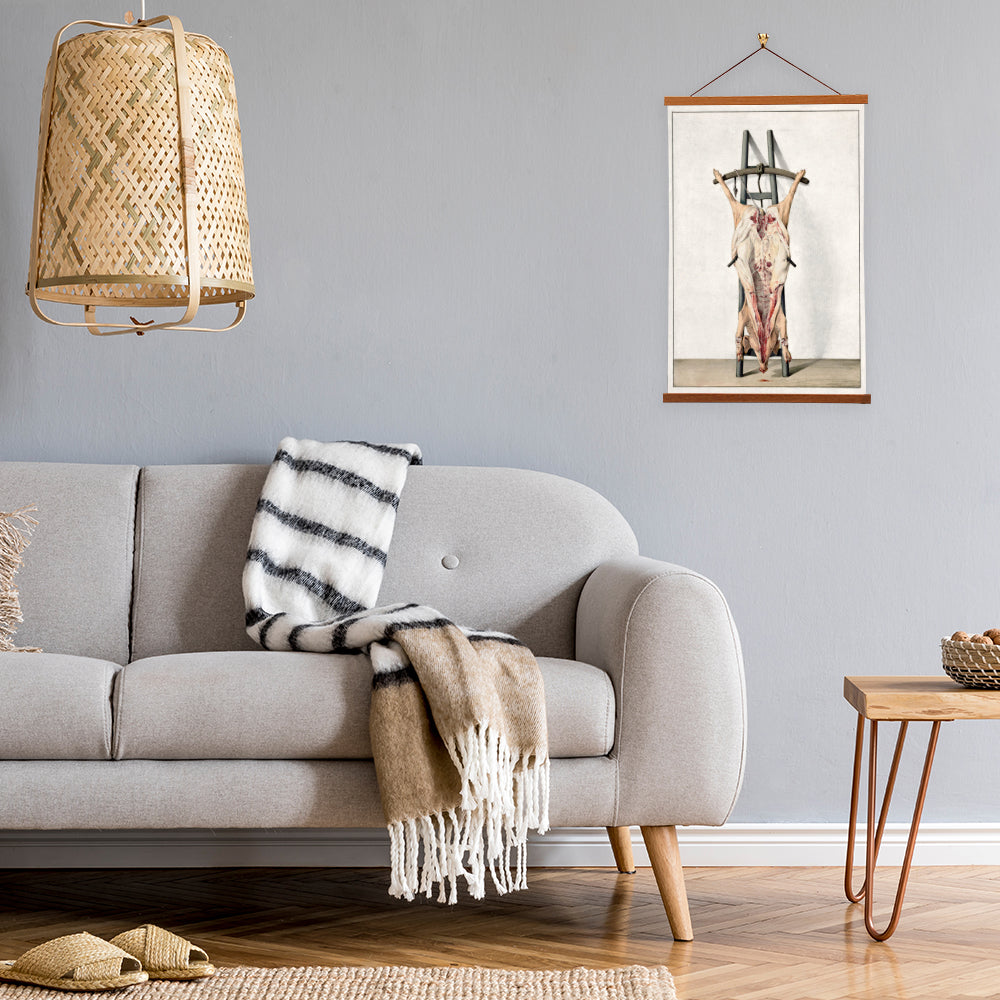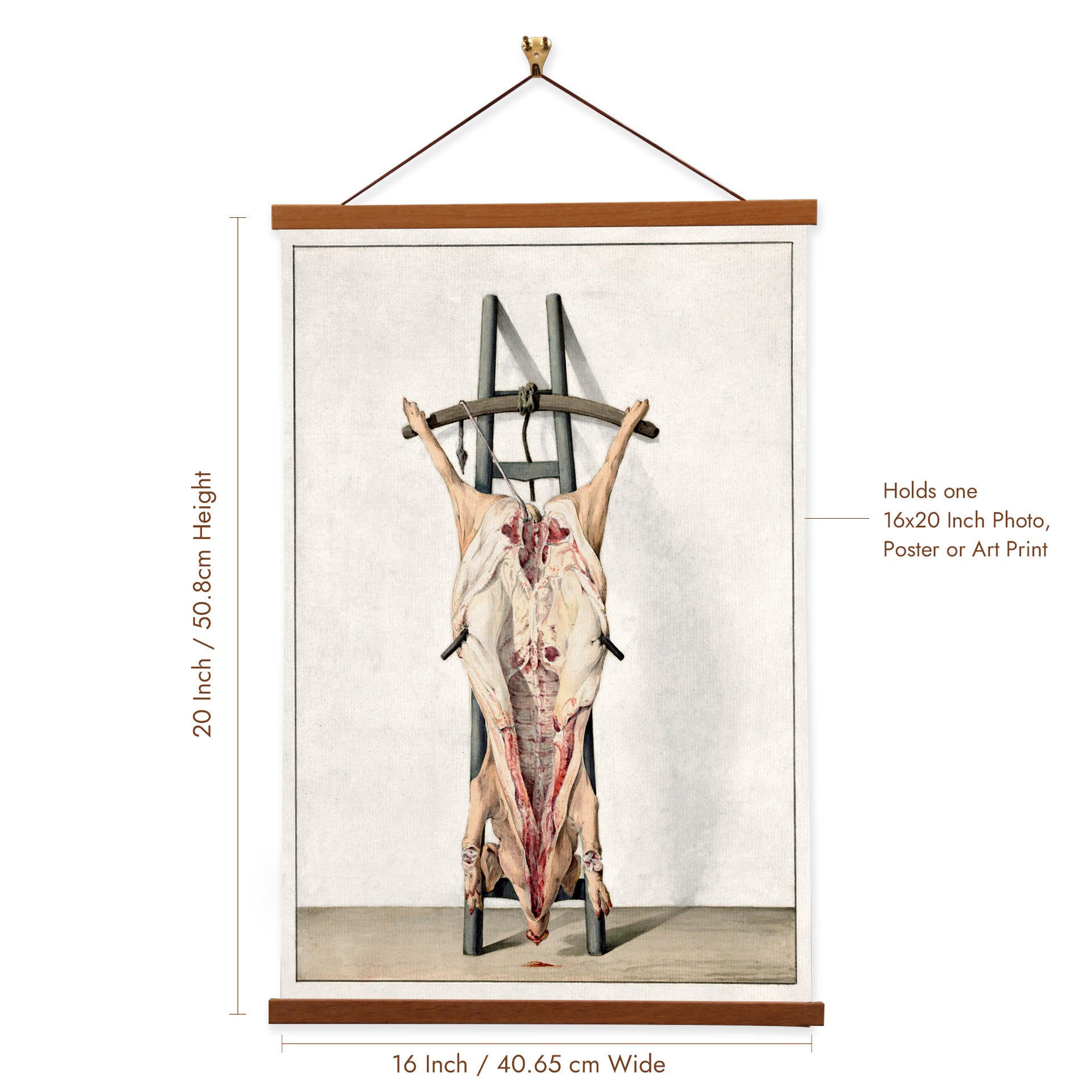 Our posters is elegantly suspended from a magnetic hanger crafted from rich walnut-colored wood, accentuated by a rustic rawhide string for a timeless and sophisticated display. Transform your space with this combination of artistry and craftsmanship.
