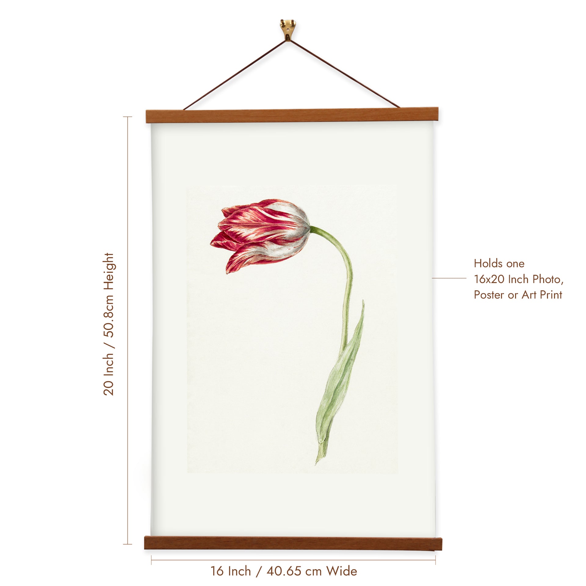 Our posters is elegantly suspended from a magnetic hanger crafted from rich walnut-colored wood, accentuated by a rustic rawhide string for a timeless and sophisticated display. Transform your space with this combination of artistry and craftsmanship.