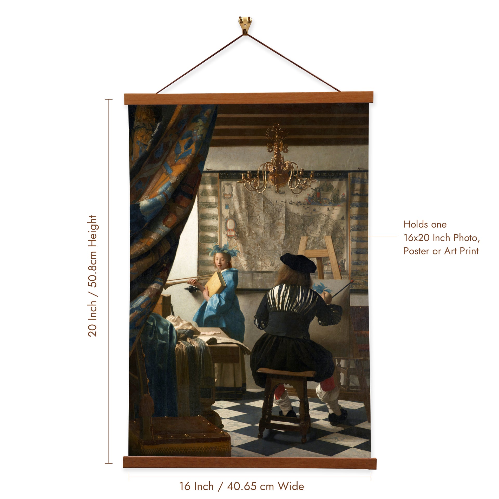 Our posters is elegantly suspended from a magnetic hanger crafted from rich walnut-colored wood, accentuated by a rustic rawhide string for a timeless and sophisticated display. Transform your space with this combination of artistry and craftsmanship.