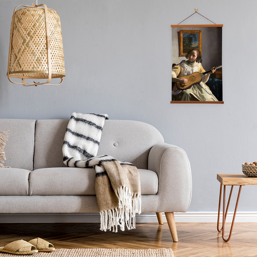 Our posters is elegantly suspended from a magnetic hanger crafted from rich walnut-colored wood, accentuated by a rustic rawhide string for a timeless and sophisticated display. Transform your space with this combination of artistry and craftsmanship.
