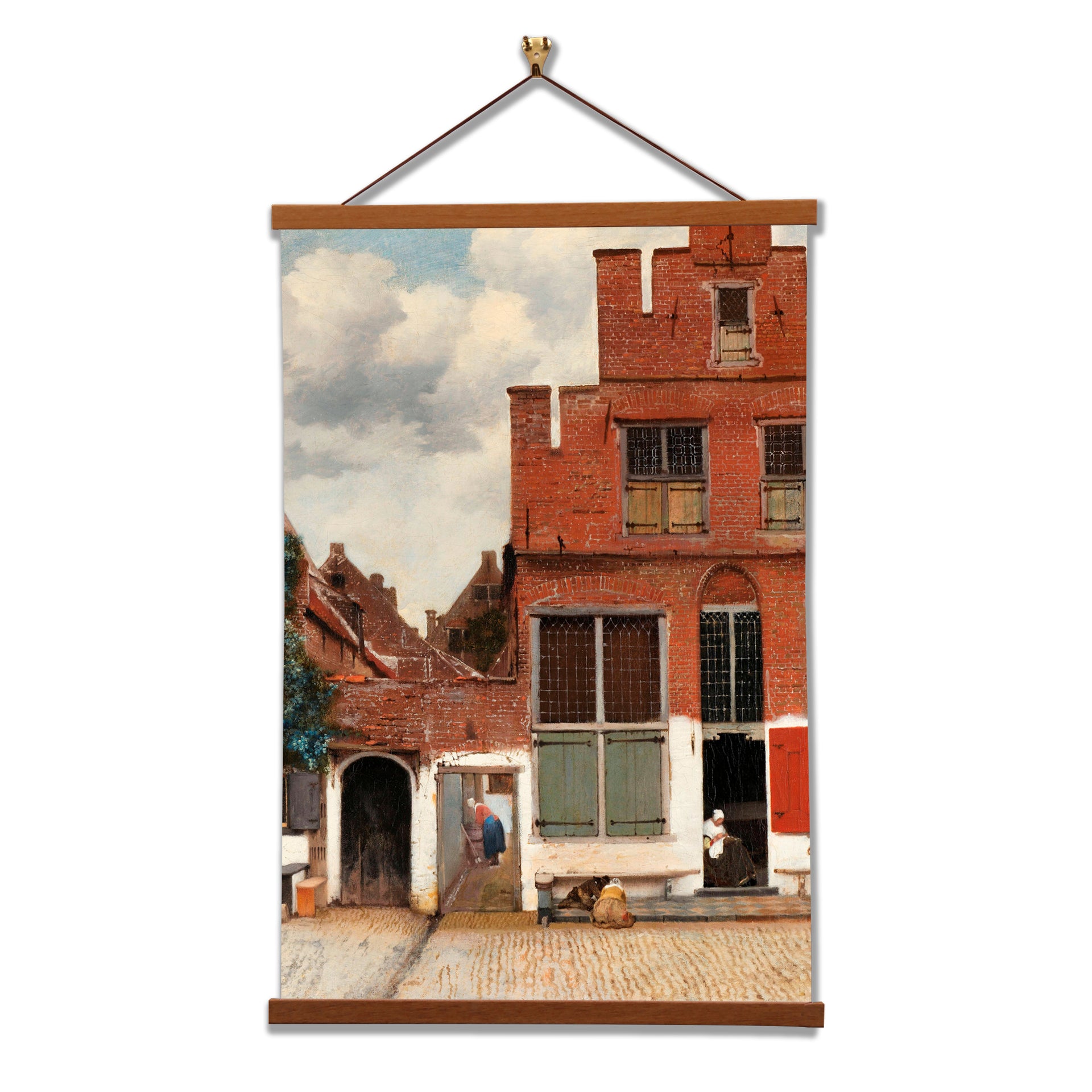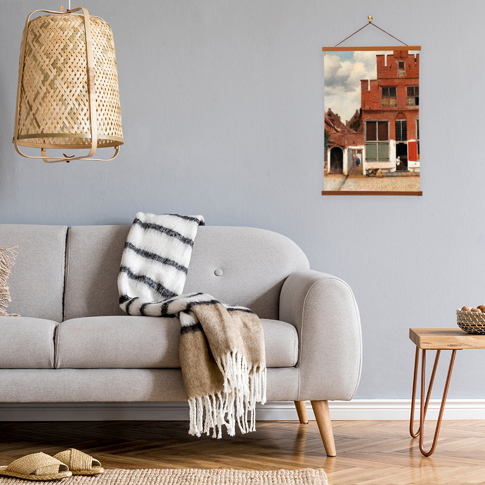 "The Little Street" is a masterpiece by Dutch artist Johannes Vermeer, created in the mid-17th century. This intimate painting depicts a charming, ordinary street scene in Delft, Netherlands, showcasing the artist's exceptional skill in capturing the play of light on everyday objects and the tranquility of domestic life.