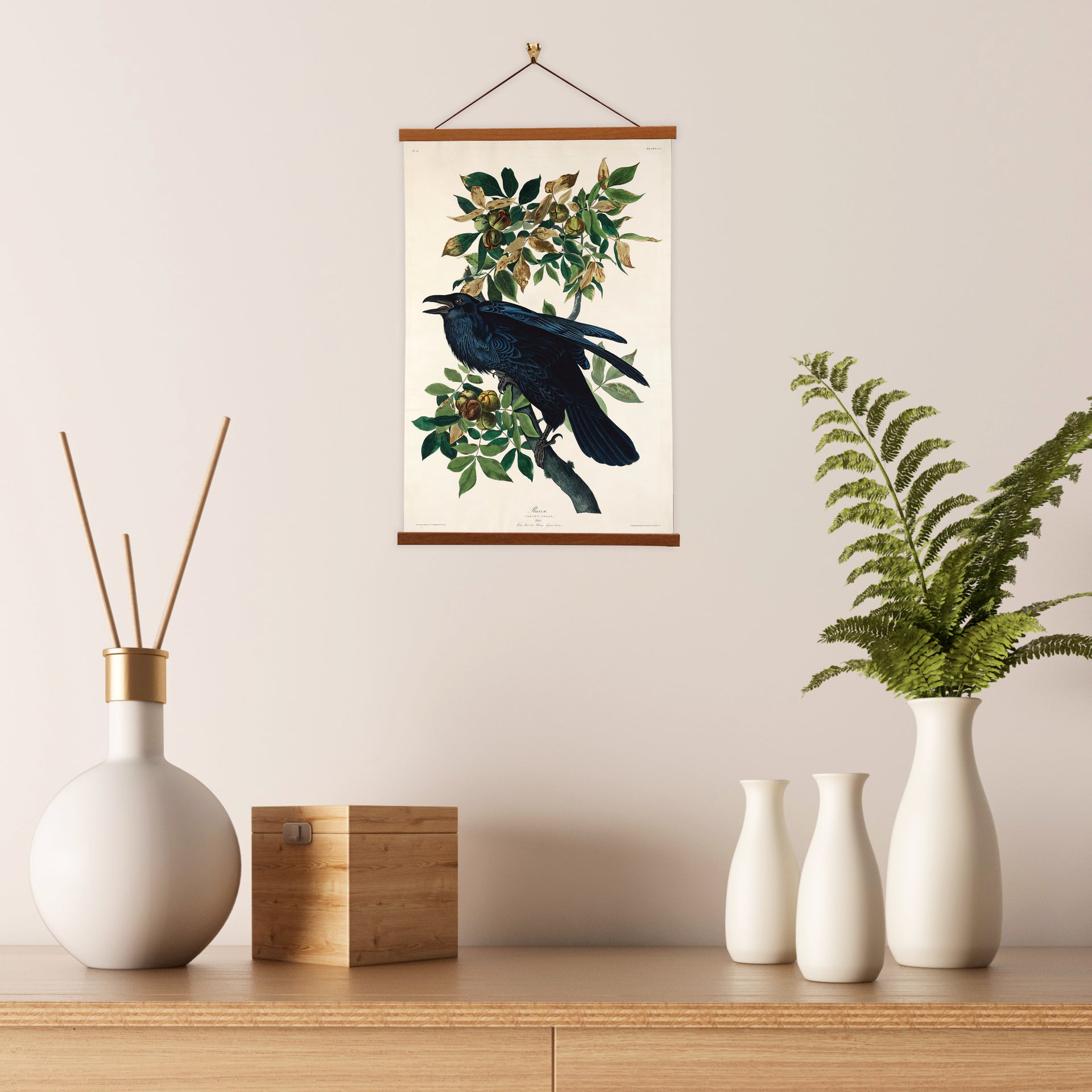 Our posters is elegantly suspended from a magnetic hanger crafted from rich walnut-colored wood, accentuated by a rustic rawhide string for a timeless and sophisticated display. Transform your space with this combination of artistry and craftsmanship.